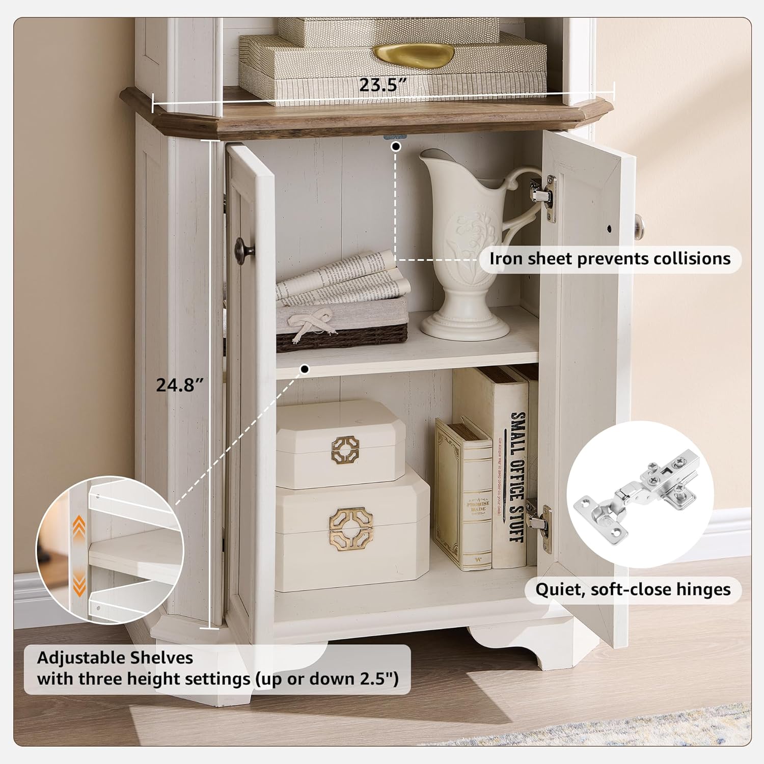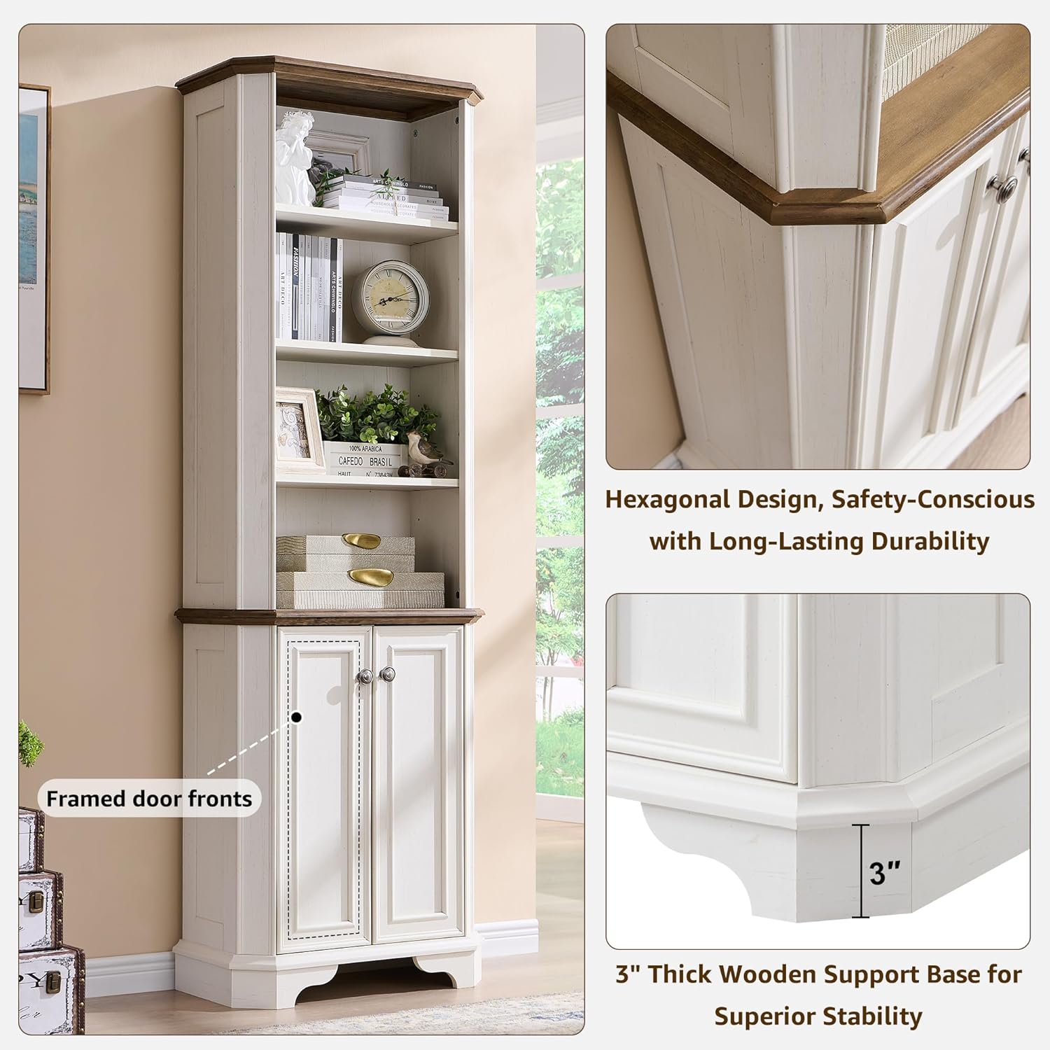 • Elegant & Sturdy 6-Tier Farmhouse Bookshelf with Farmhouse Charm: Upgrade your home office or living space with this 6-tier wood bookshelf, measuring 23.5”W x 11.7”D x 72”H. Designed to double as both a bookcase and a storage cabinet, it blends Victorian-style elegance with modern durability. The framed door fronts, hand-polished vintage mushroom knob, and a natural wood grain finish create a refined yet rustic aesthetic, enhancing any office or home décor