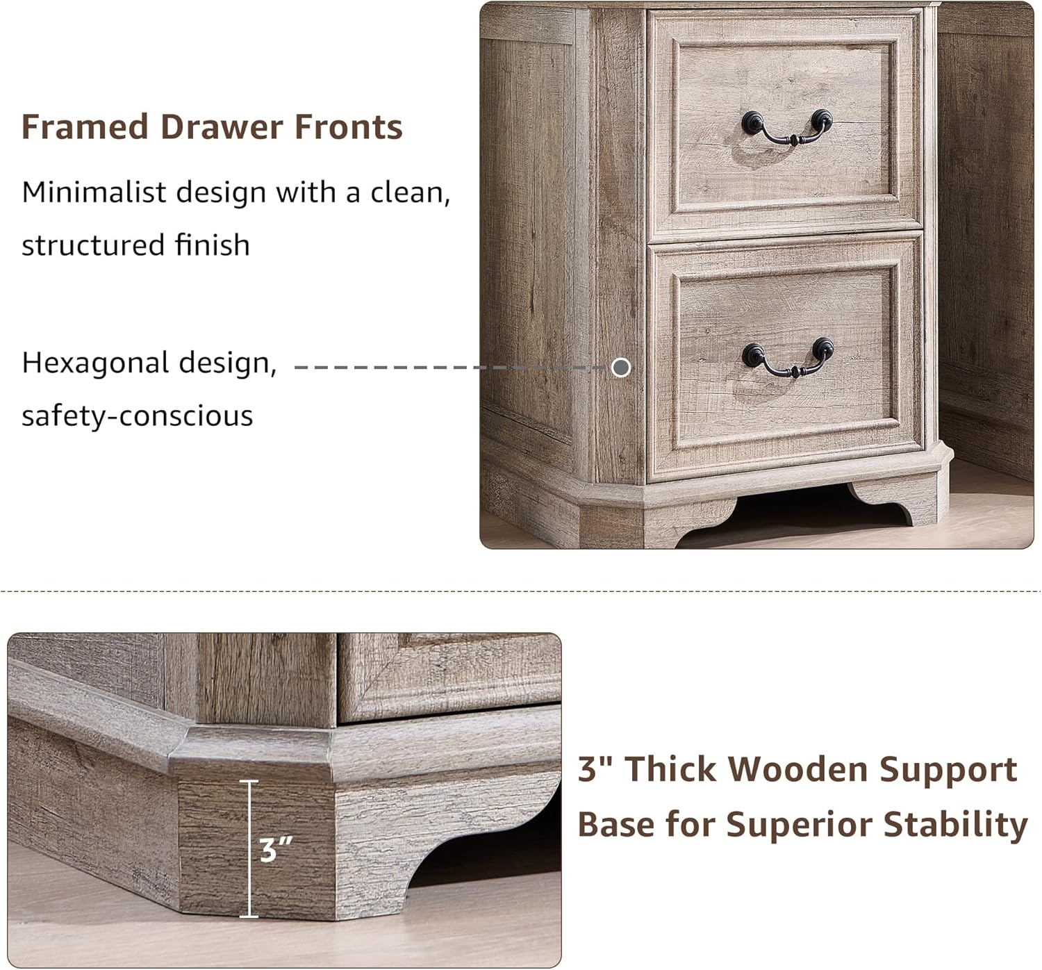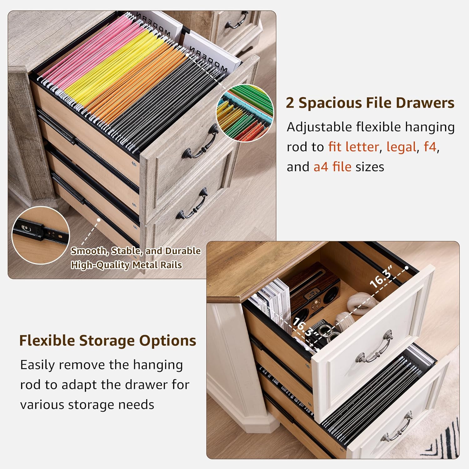 • 2 Spacious Drawers with Flexible Hanging Rods: The two large file drawers (16.3"L x 16.3"W x 10.2"D) include removable hanging rods, allowing you to organize Letter, Legal, A4, and F4 file sizes. Need extra storage? Simply remove the rods to transform the drawers into versatile compartments for clothing, accessories, or seasonal items. Smooth metal drawer slides ensure effortless opening and closing, while the interlock safety system prevents both drawers from opening simultaneously