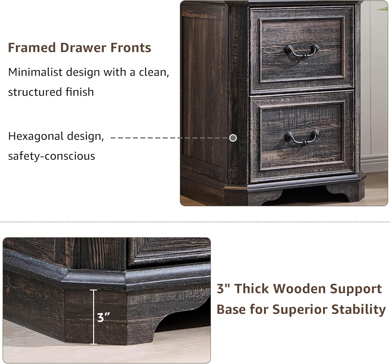 • 2 Spacious Drawers with Flexible Hanging Rods: The two large file drawers (16.3"L x 16.3"W x 10.2"D) include removable hanging rods, allowing you to organize Letter, Legal, A4, and F4 file sizes. Need extra storage? Simply remove the rods to transform the drawers into versatile compartments for clothing, accessories, or seasonal items. Smooth metal drawer slides ensure effortless opening and closing, while the interlock safety system prevents both drawers from opening simultaneously