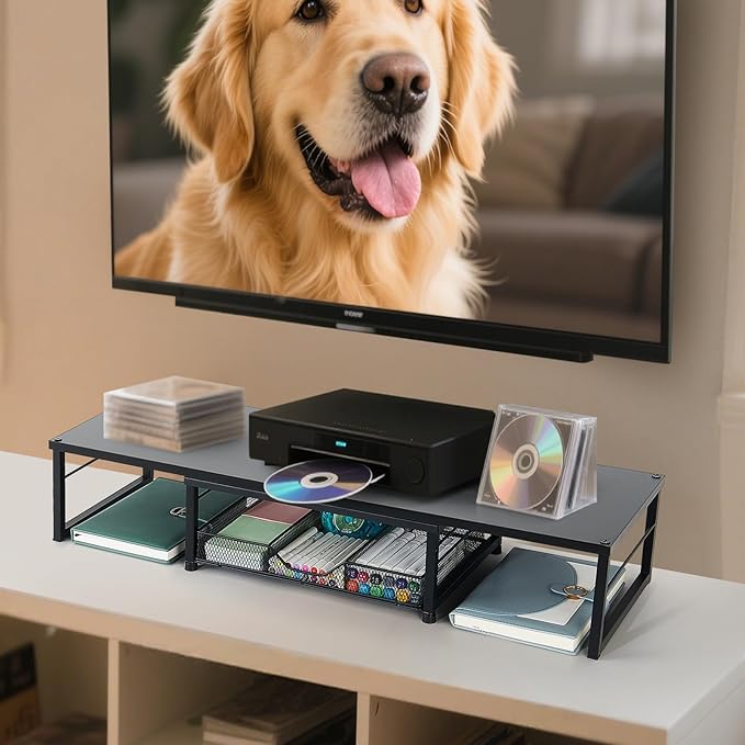 • More Storage Space: Space under the monitor stand can be used for additional desk supplies storage. A drawer tray can compartments size for different stationery. The desk monitor stand creating a clear workspace environment