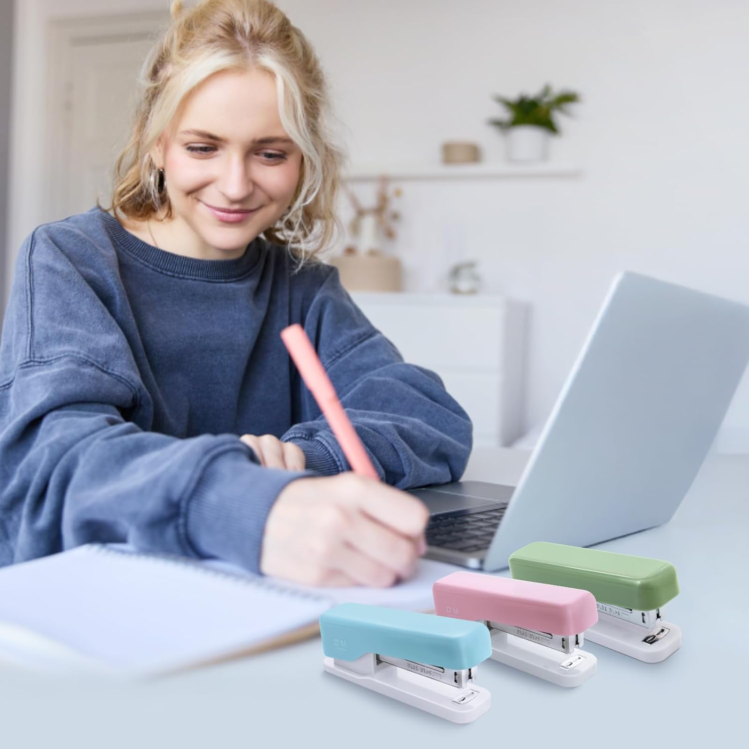 • 💚【Cute Design】Stapler has lovely color matching and fashionable appearance, which is very suitable for home school and office. Candy color matching brings good mood to your work and life
