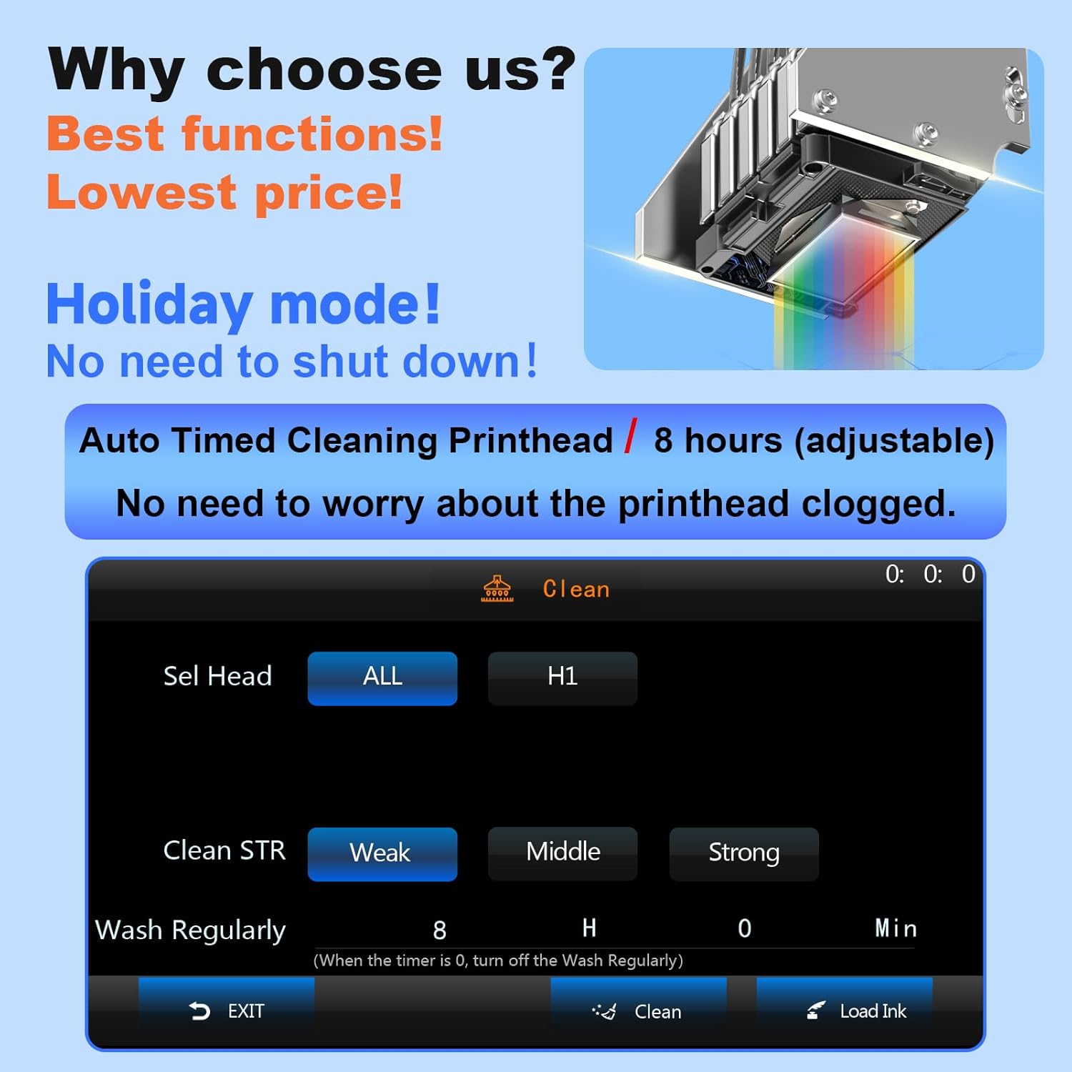 • ❤️ innovative anti-blocking technology, say goodbye to printing troubles: Equipped with 3-in-1 white ink cycle, mixing, filtration system and automatic cleaning and moisturizing device, to ensure that the nozzle is permanent and smooth, to avoid blockage and affect the work.