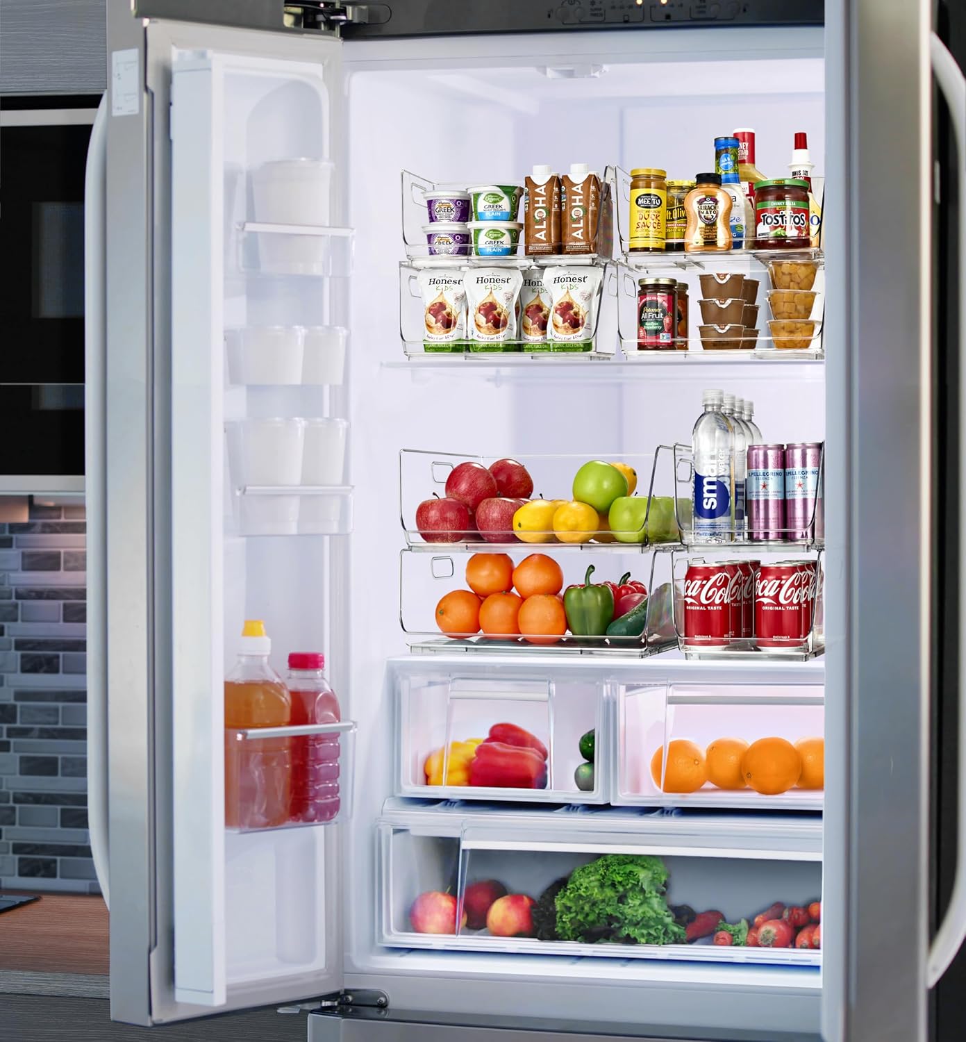 • Open Front Design: Open style front provides easy grab n’ go access - Sorbus Stackable Clear Storage Bins save time and hassle of searching through a cluttered refrigerator, freezer, or pantry cabinet - Use as pantry stackable bins, clear plastic stackable storage bins for under the sink, open stack bins, and more