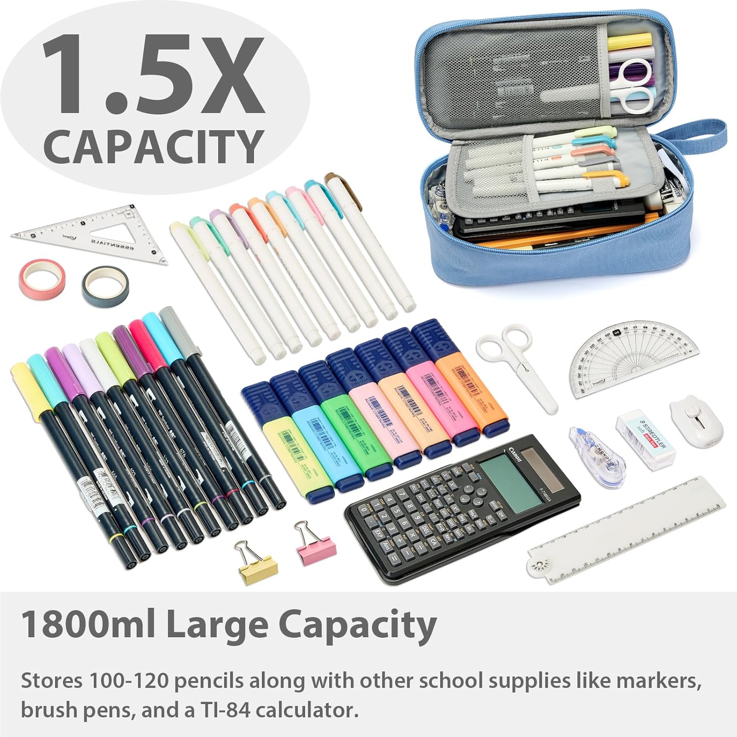 Pencil Case Pouch Box Bag School Supplies Girls Boys Kids, Cute Preppy Stuff Large Big Capacity Aesthetic Pen Organizer, Back to College Stationary, Cornflower Blue, Classic Stlye, 1800ml