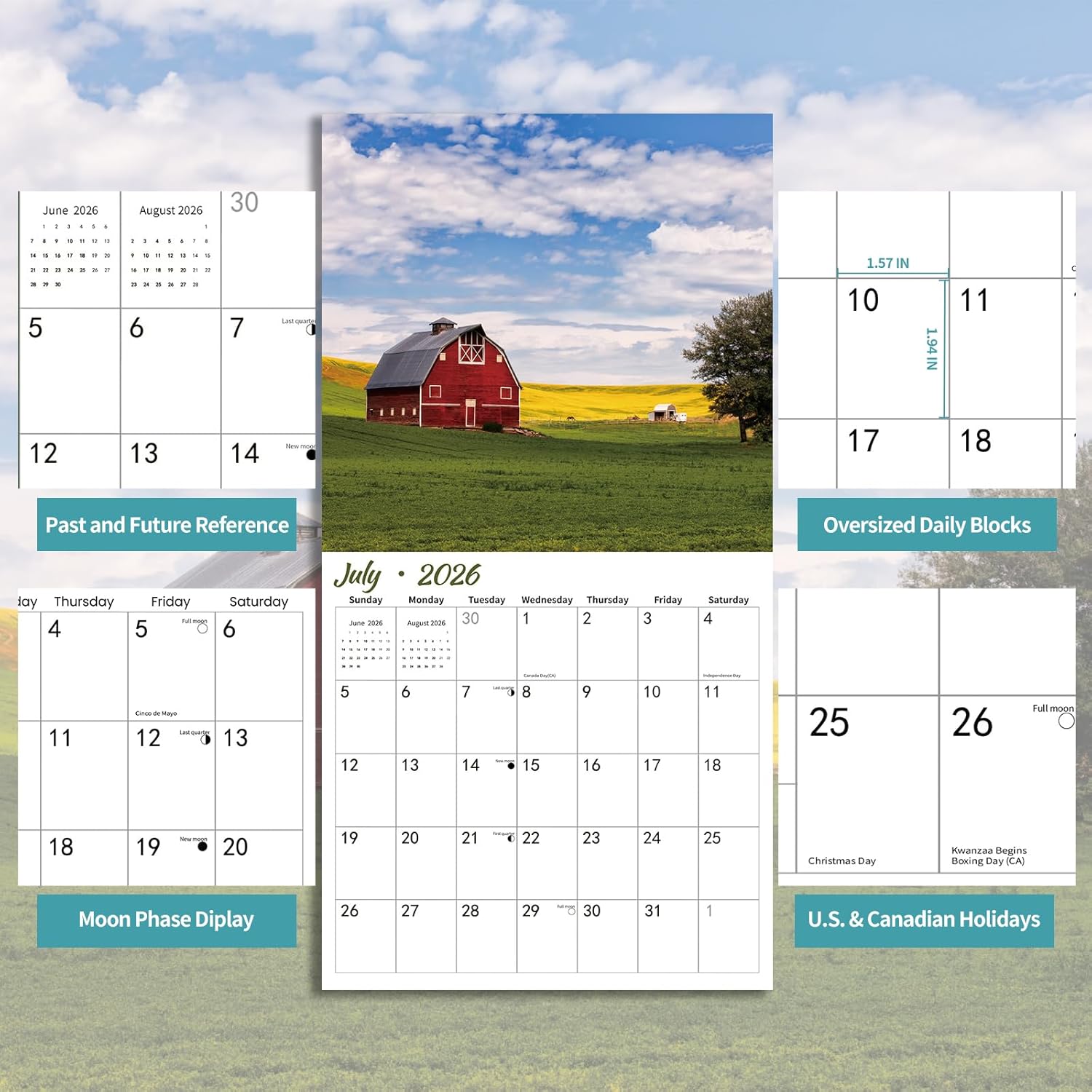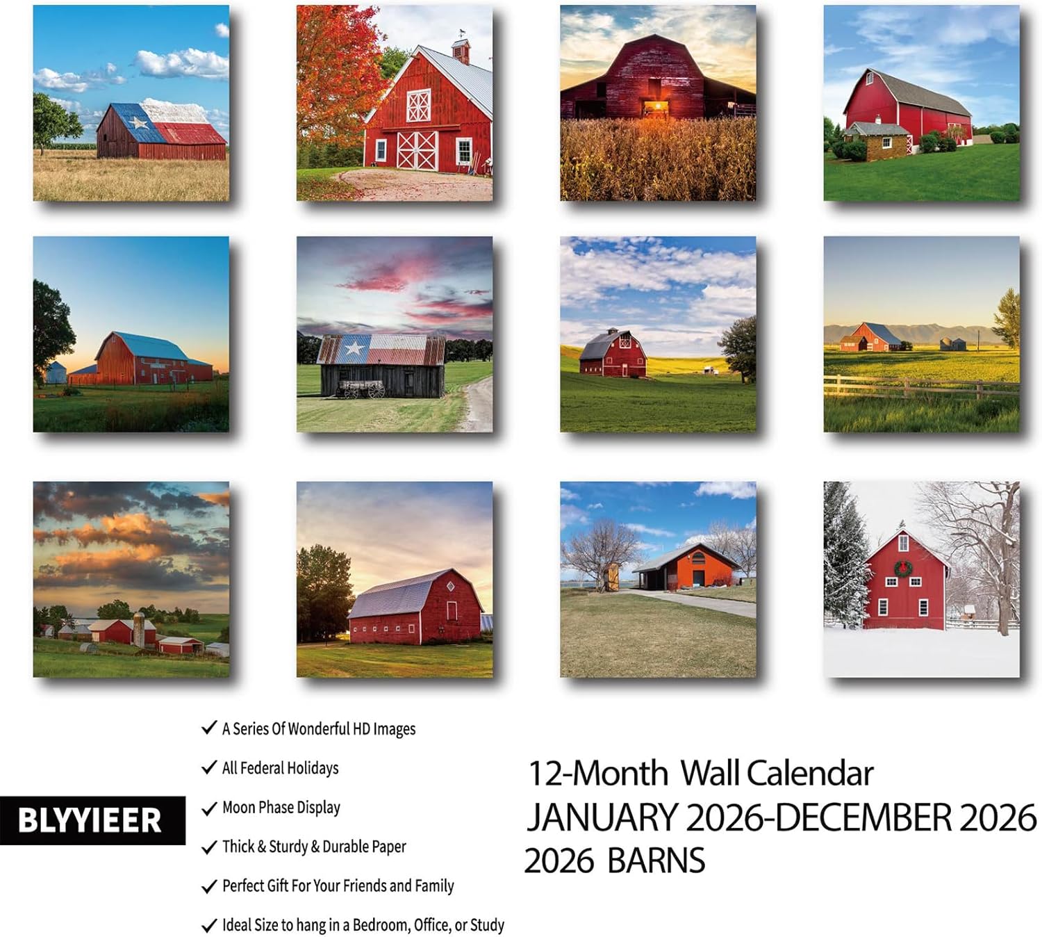 • 【Set a Peaceful Mood】➤The Barns 2026 Wall Calendar features relaxing photos of Barns. It’s perfect for you to relax, breath, and eliminate the feeling of tension and anxiety in yoga studios, massage therapy centers, meditation rooms and other serene spaces. You'll love this wall calendar! Motivating yet interesting.