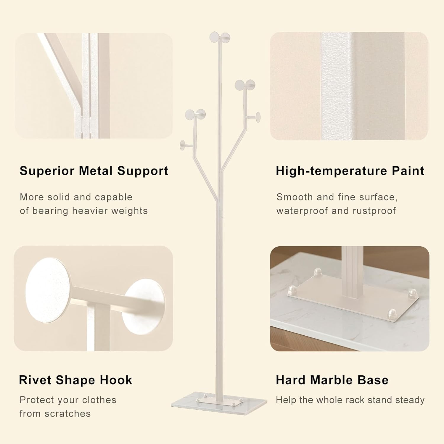 Heavy Duty Coat Rack Tree-shaped Metal Freestanding Coat Tree with Sturdy Marble Base Corner Coat Rack for Bedroom Entryway Hallway 14.96 x 10.24 x 68.9 Inches (White)