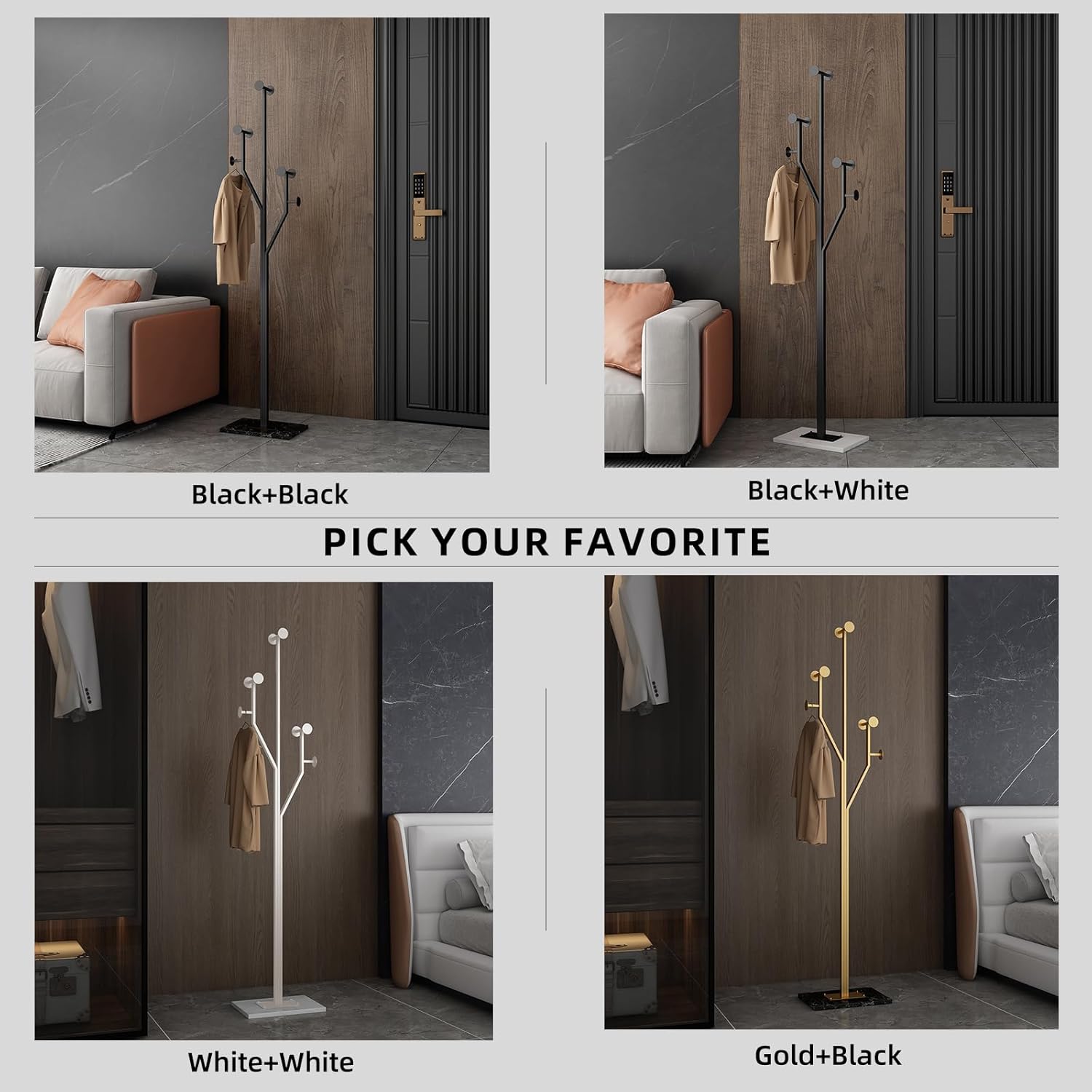 • Heavy-duty: Crafted from high-quality metal and paired with a 10.24” x 14.96” marble base, this tree-shaped corner coat rack offers exceptional stability and durability; Like a sturdy tree, it can support a heavy coat without tipping over