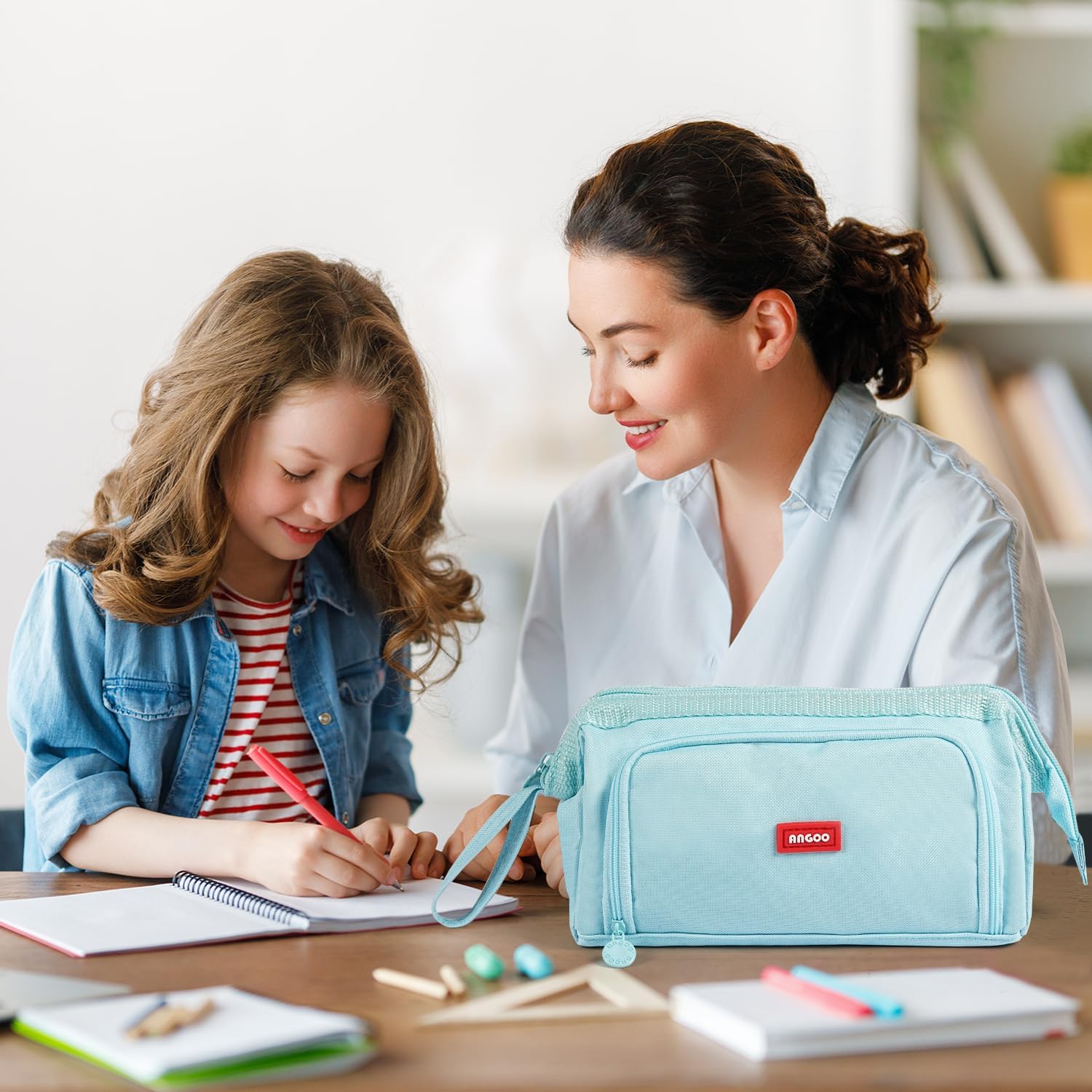 Pencil Case Pouch Large Capacity with Compartments, Pencil Case Pouch Bag with Zipper Handle for Teen Girls Boys Adults Women Men, Portable Pen Bag Stationery Organizer for Office School Travel, Blue