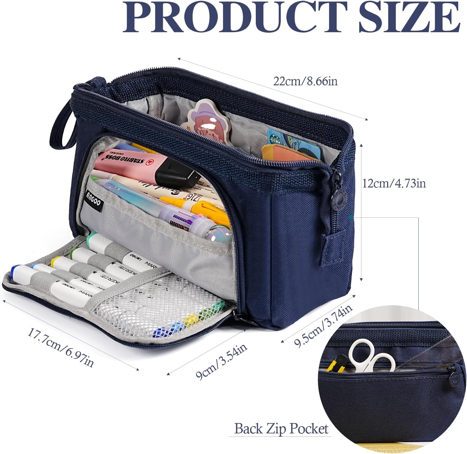• Large Capacity Pencil Case: The pen bag measures 8.7 x 3.7 x 4.7 inches. With multiple separate compartments, this pencil bag offers plenty of space to efficiently organize pens, pencils, markers, scissors, sticky notes, calculator, cards and other stationery or essentials.