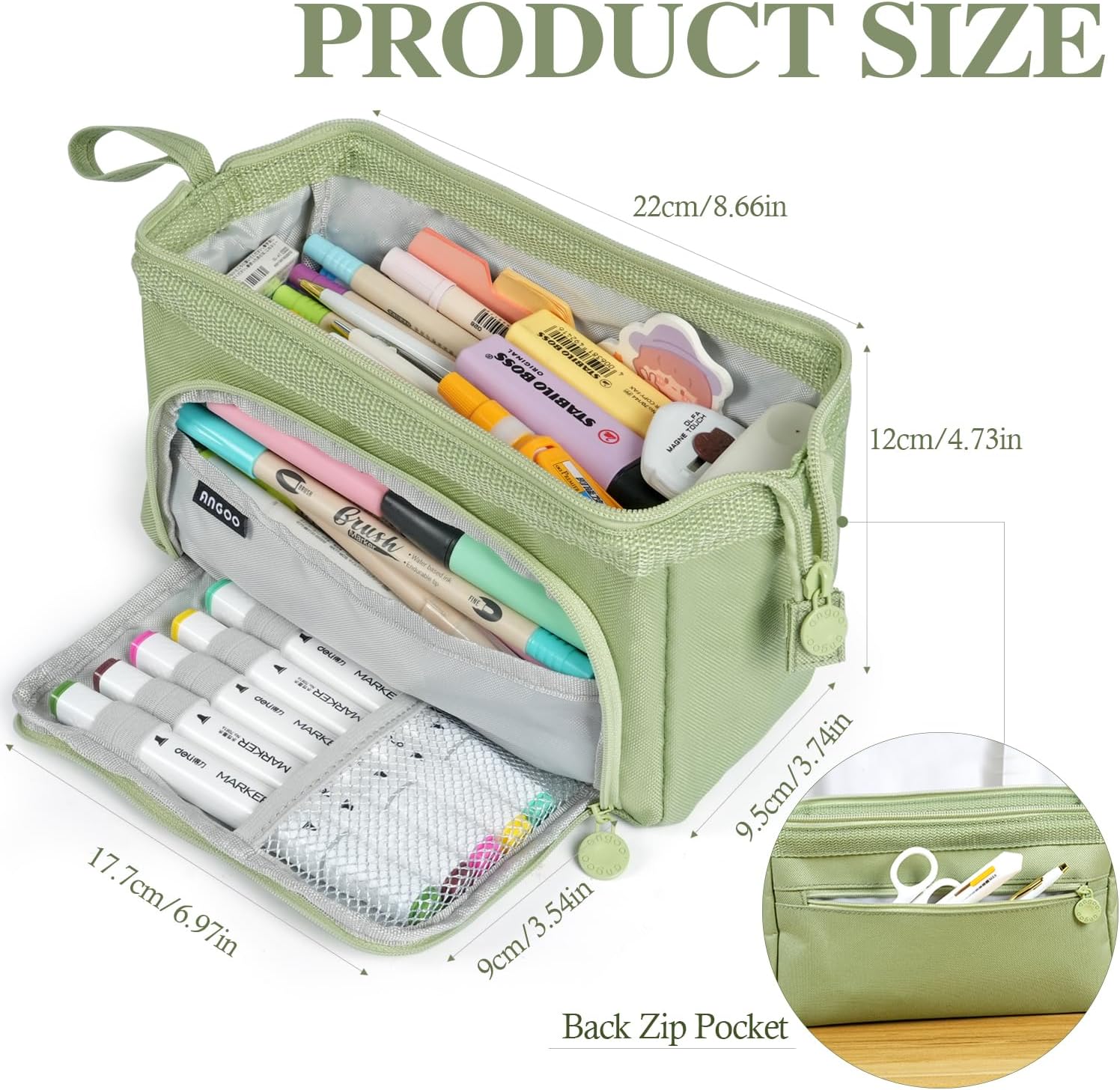 • Pencil Case with Compartments: The main compartment of the pencil pouch is designed with a wide opening and can store up to 100 pens, inside with two interior card slot pockets. The front flap with 5 pen slots. A zippered pocket on the back. Multiple compartments help you organize your essentials efficiently.