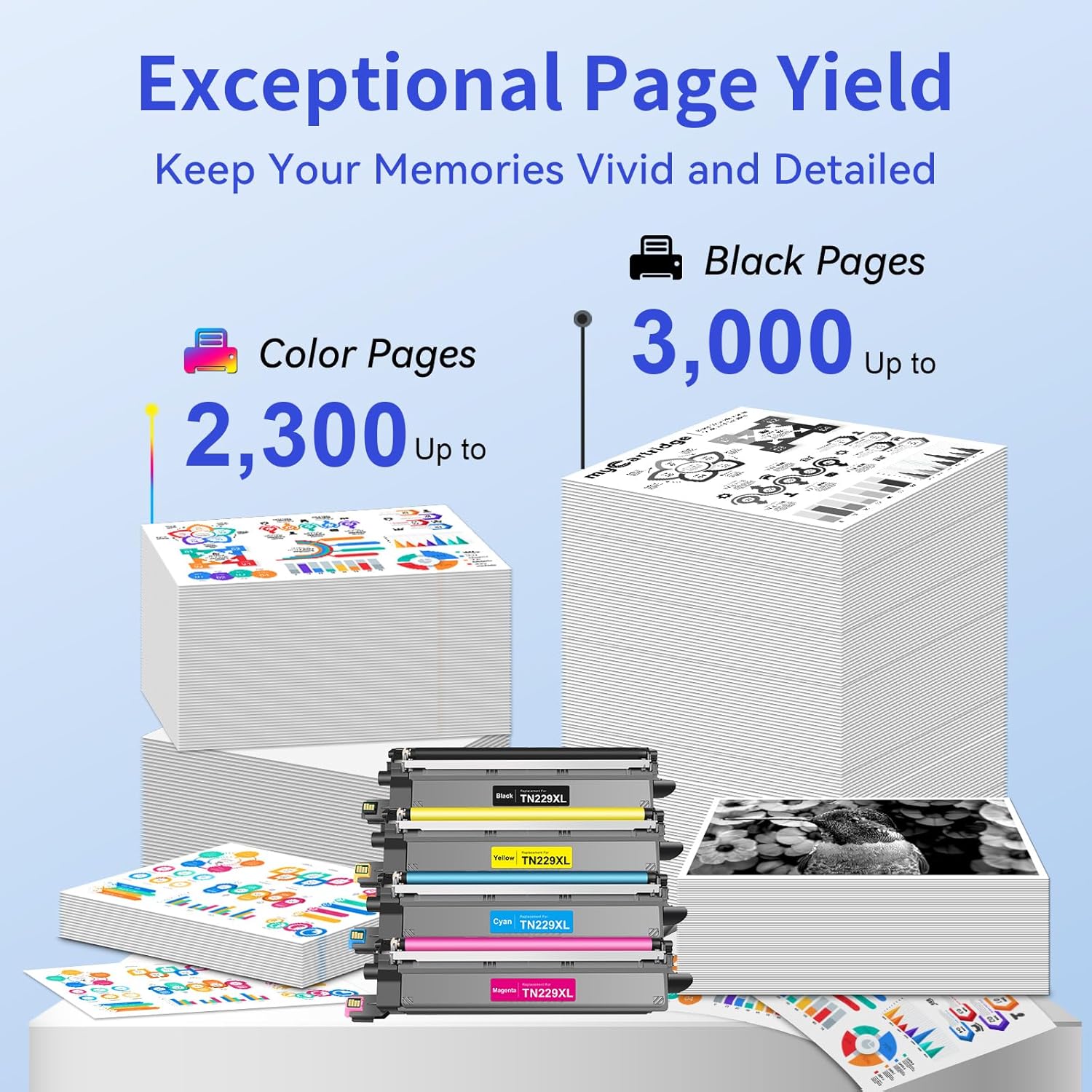 • Superior Quality:Our TN-229 XL TN229 TN229XL toner cartridges could be recognized instantly and deliver clear and crisp text, ensuring professional documents, graphics and photos