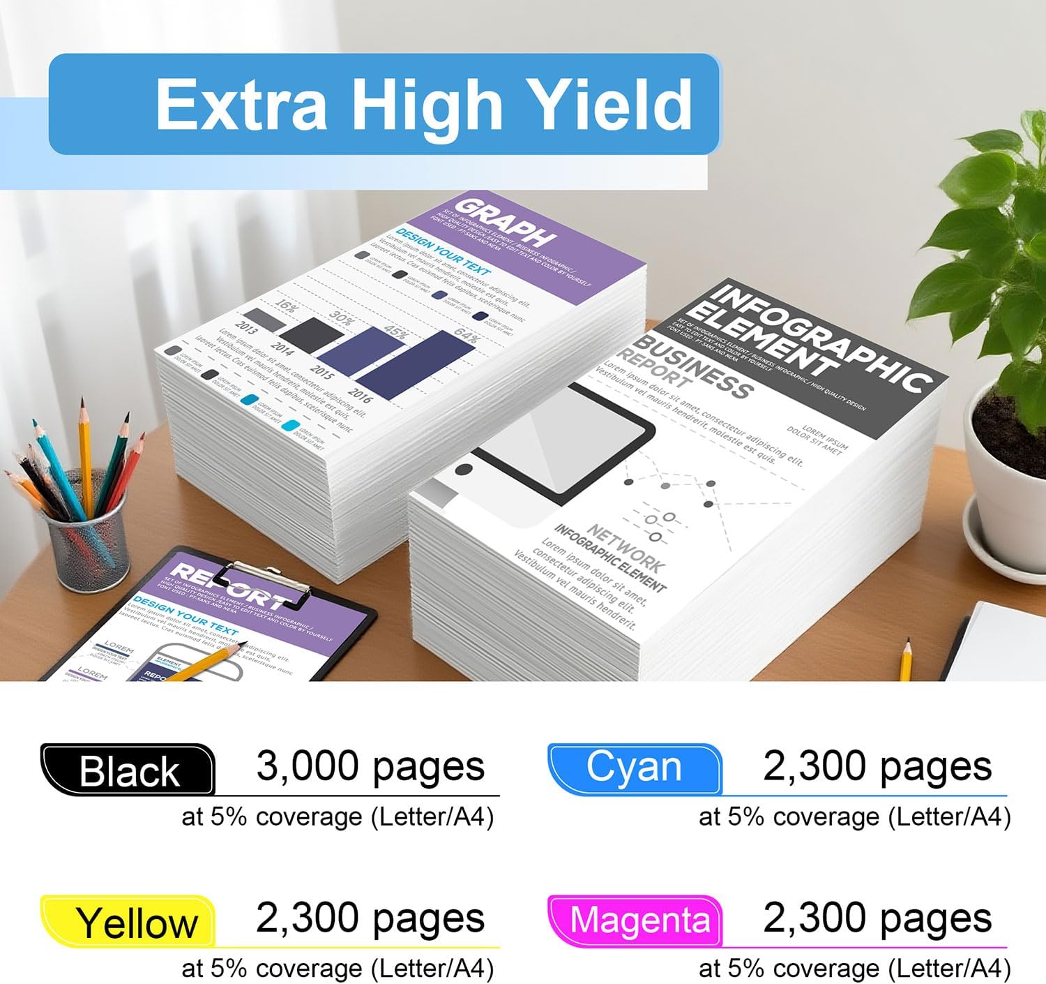 • High Page Yield: the high page yield for 4 pack TN229XL color toner cartridges set is up to 3000 pages per pack(at 5% coverage/Letter A4)