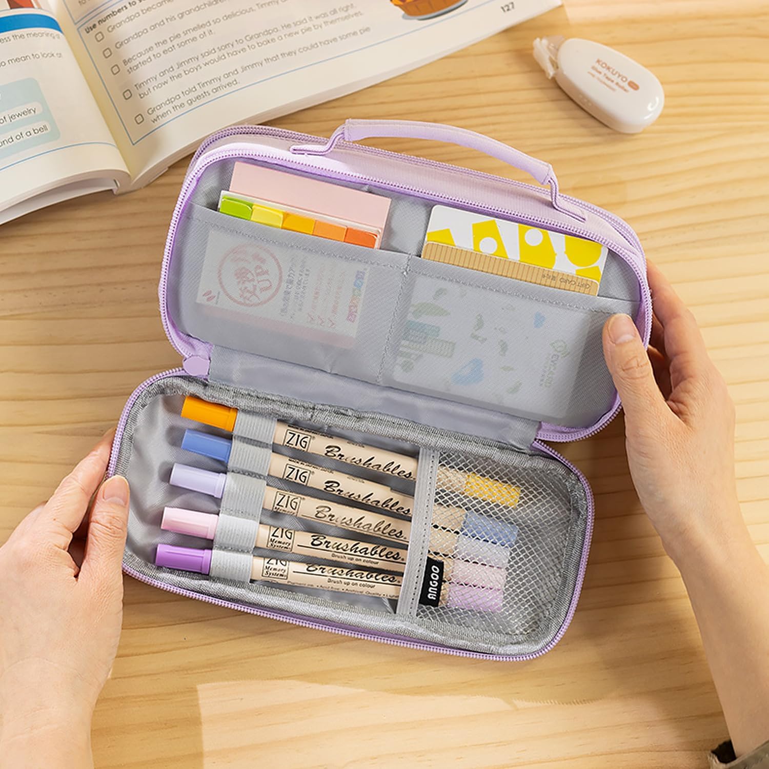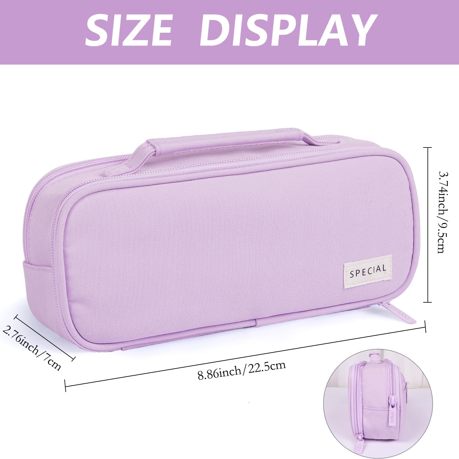 MAMUNU Pencil Case Large Capacity with 3 Compartments, Pencil Case Pouch Bag with Zipper Handle Portable Pen Stationery Organizer for Teen Girls Adults College School Office Travel, Purple