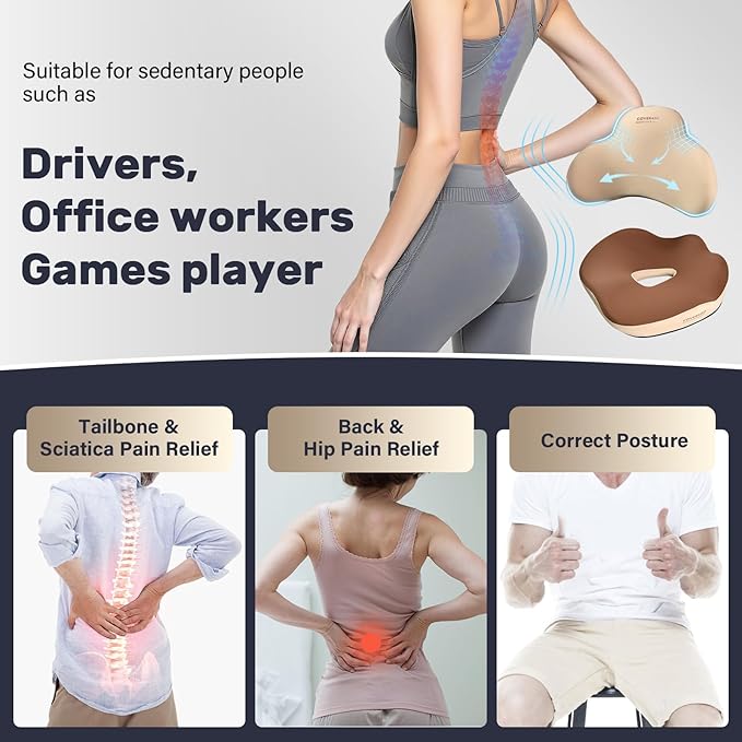 Coverado Seat Cushion and Lumbar Support Pillow for Car Office Chair, Ergonomic Memory Foam Desk Chair Cushion Back Support Pillow, Sciatica & Back & Tailbone Pain Relief Cushion-Beige