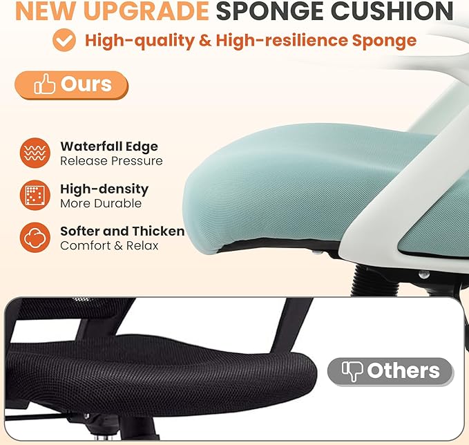 • THICKEN SEAT & SKIN-FRIENDLY FABRIC: Our drafting stools are made of softer and thicken foam to bring you more comfortable sitting experience. High resilience and high density sponge is durable and not easy to deform for long-time use. While skin-friendly mesh avoid any unpleasant rough feeling, it also adds some elegance for your room.