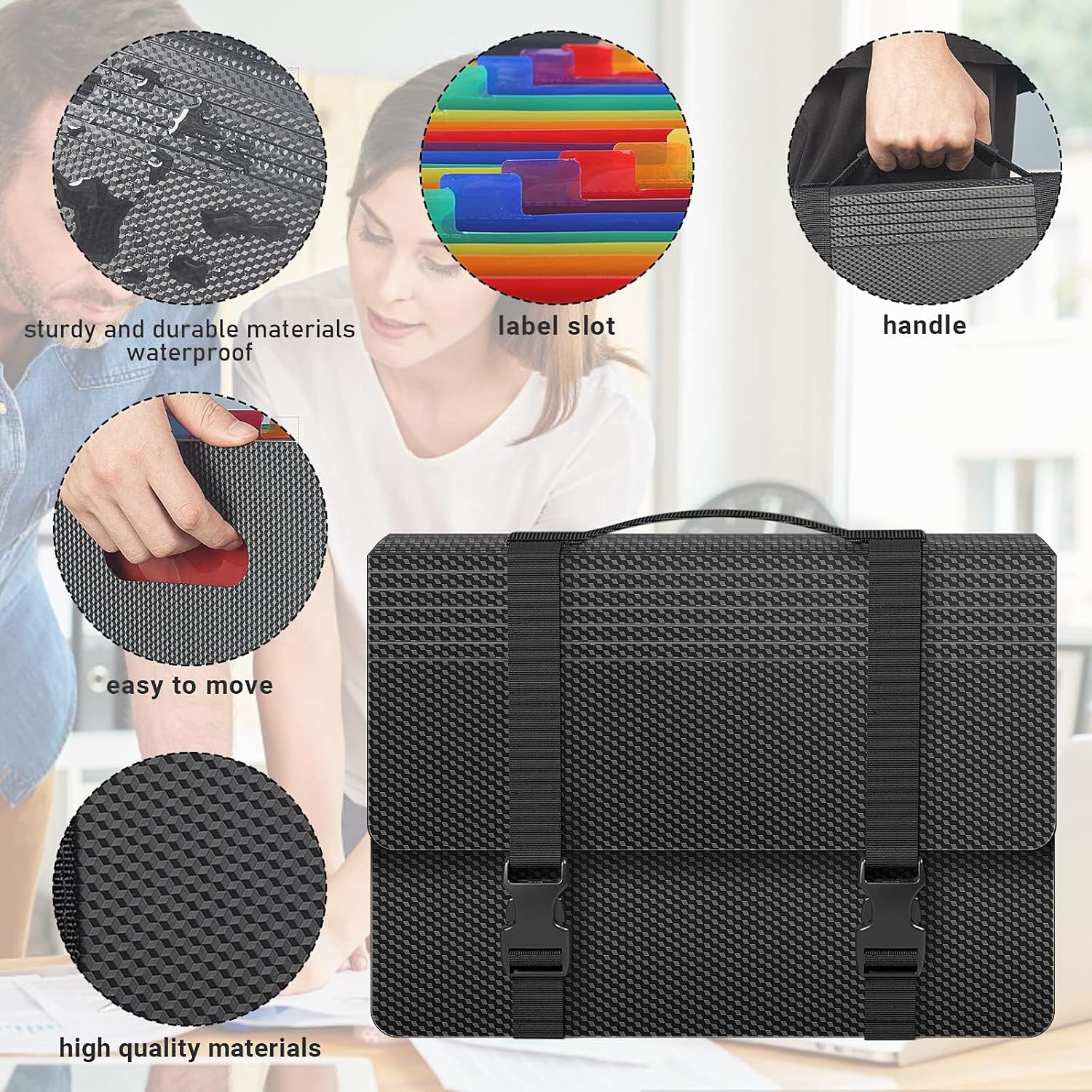 • 【Super Portable and Secure Closure】Expanding file folder is designed with adjustable sholder straps and handles, offering large capactiy and portability,The Nylon dual-shoulder staps and sturdy ABS buckles provide good bottom support and expandability. It ensures a spacious and secure using space whether stationary or on the move.