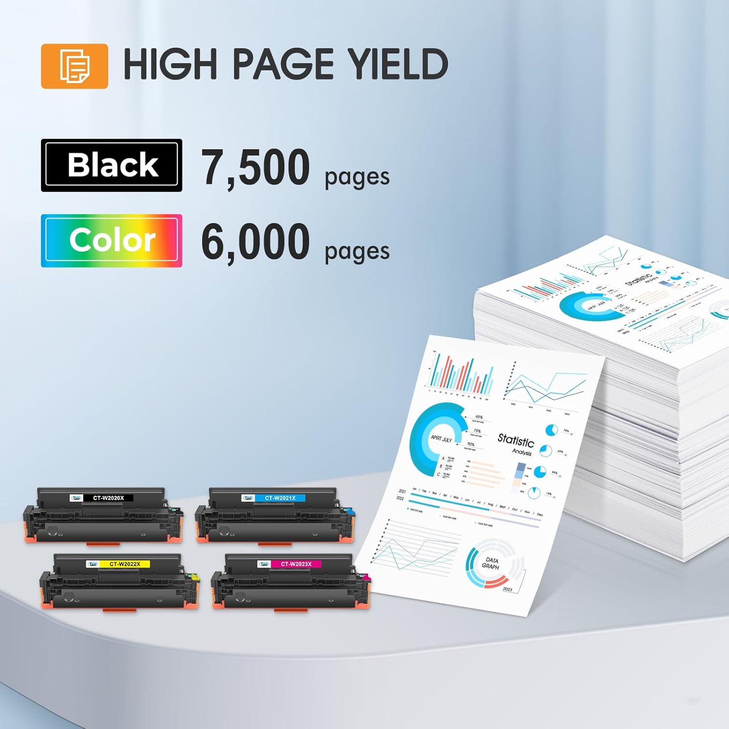 • Page yield: 7,500 414x (black) and 6,000 414x (color) based on 5% coverage (letter/a4)
