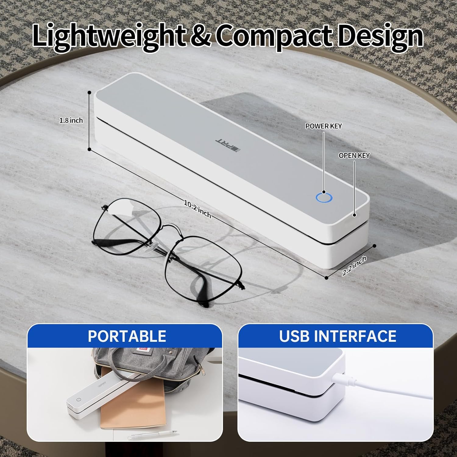 • Lightweight Thermal Printer: Weighing only 1.1 pounds (500g), this portable wireless printer is significantly lighter than traditional printers with its sleek minimalist design. The compact size slides easily into any briefcase or backpack, offering true " print anywhere " freedom for mobile professionals