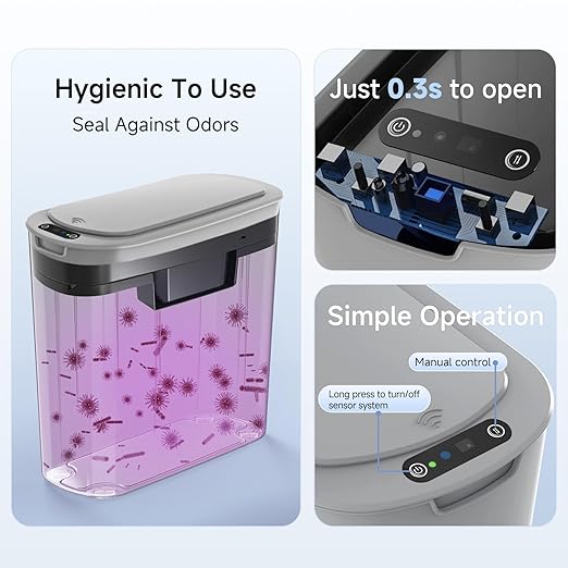 • 【Touchless Convenience】Simply place your hand above the infrared motion sensor, the lid will stay open, and will automatically close if no object movement is detected within 5 seconds. Requires 2 AA batteries (not included)