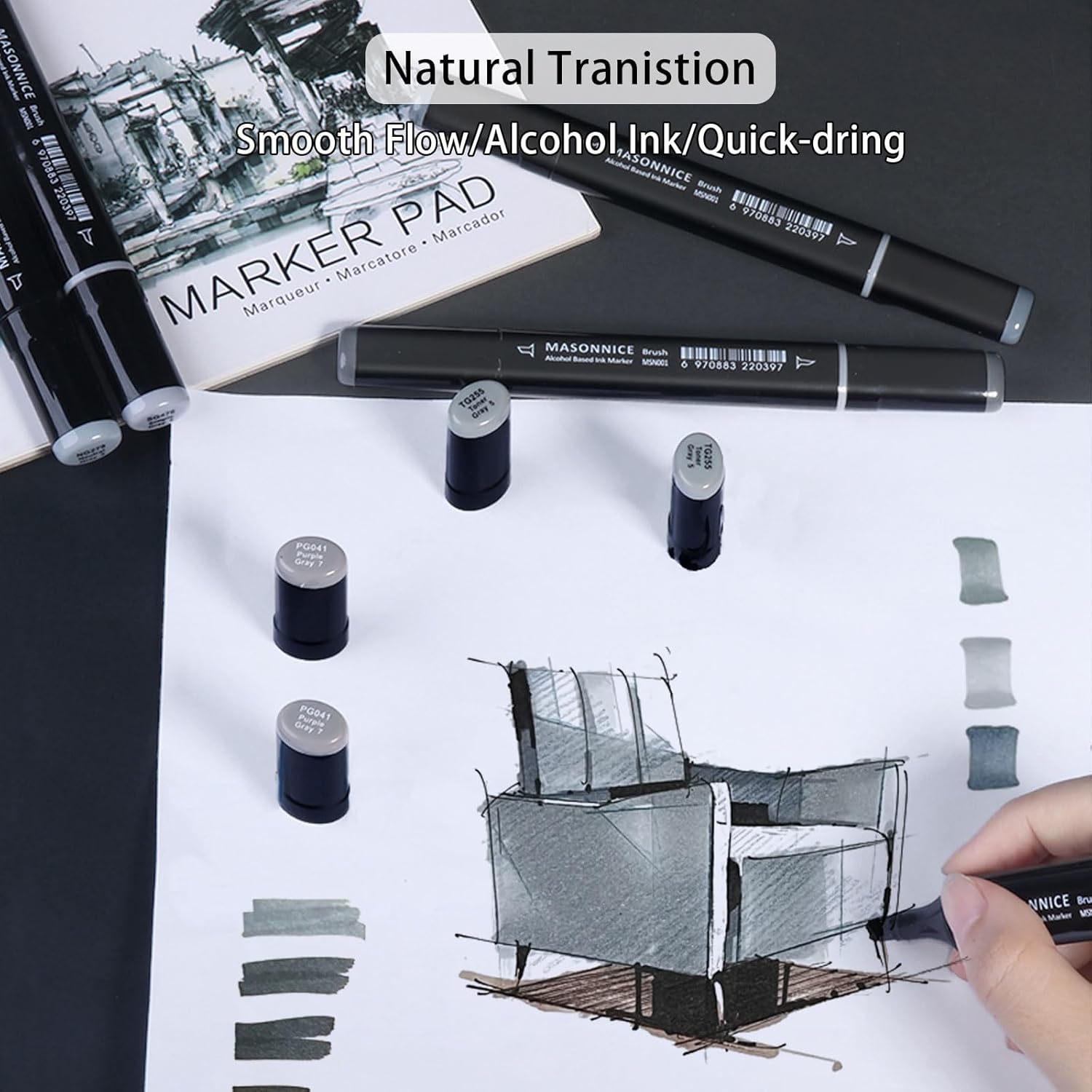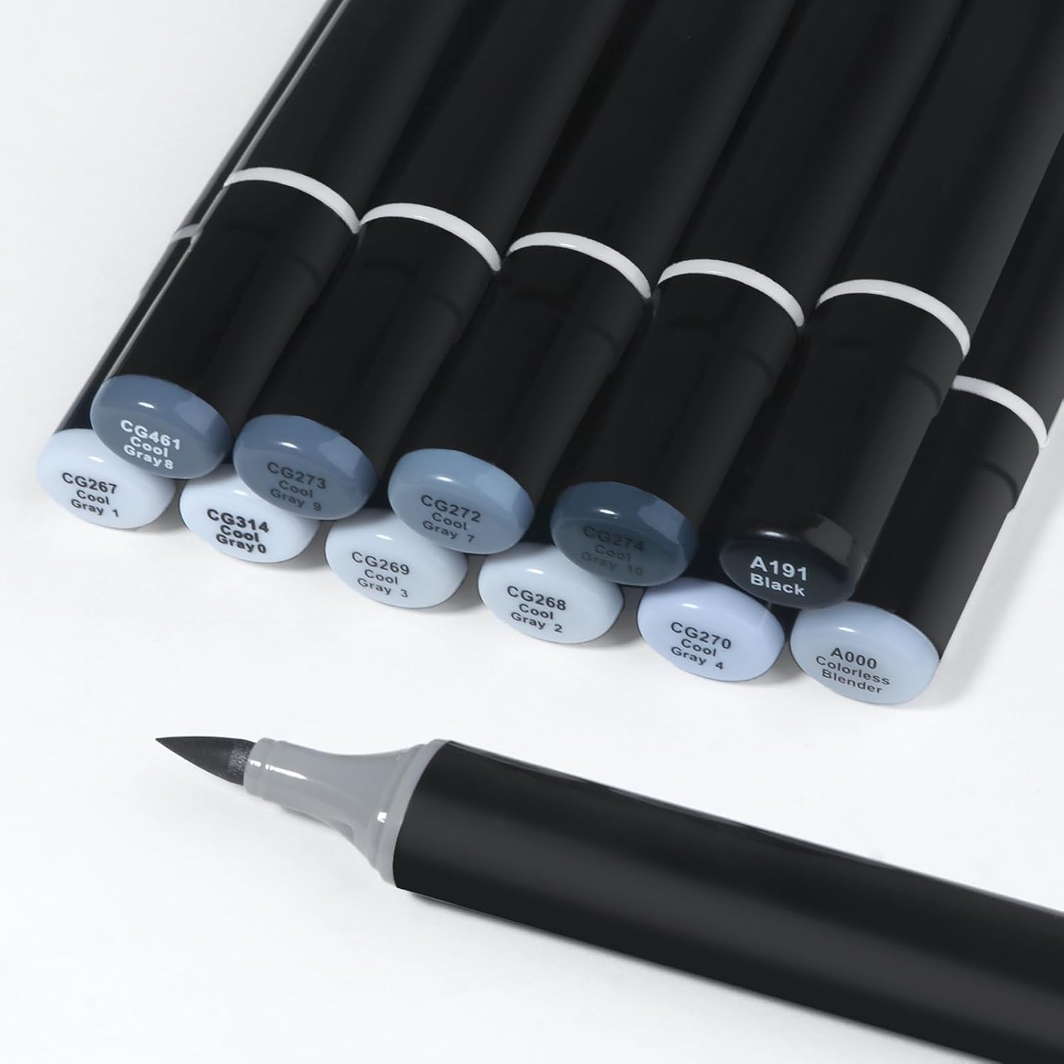 • Permanent Classic gray colors art markers, used for sketching, drawing, shading, sketching, designing, outlining, illustrating and rendering,use these pens for coloring, comic, doodling, and more