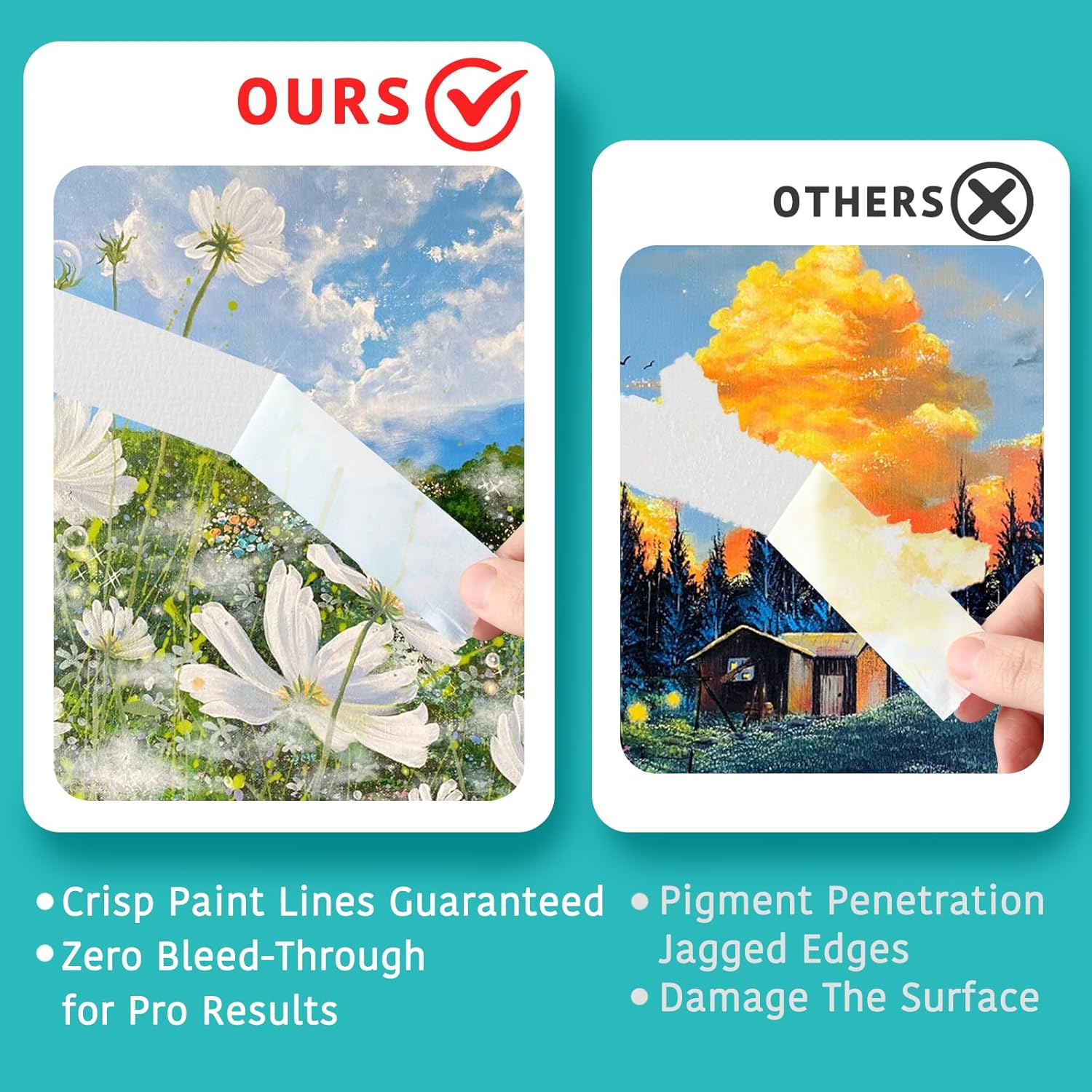 • ✅ Professional-Grade Precision – Achieve crisp lines with white painters tape that resists paint bleed. Perfect as painters tape for edges, canvas art, or framing