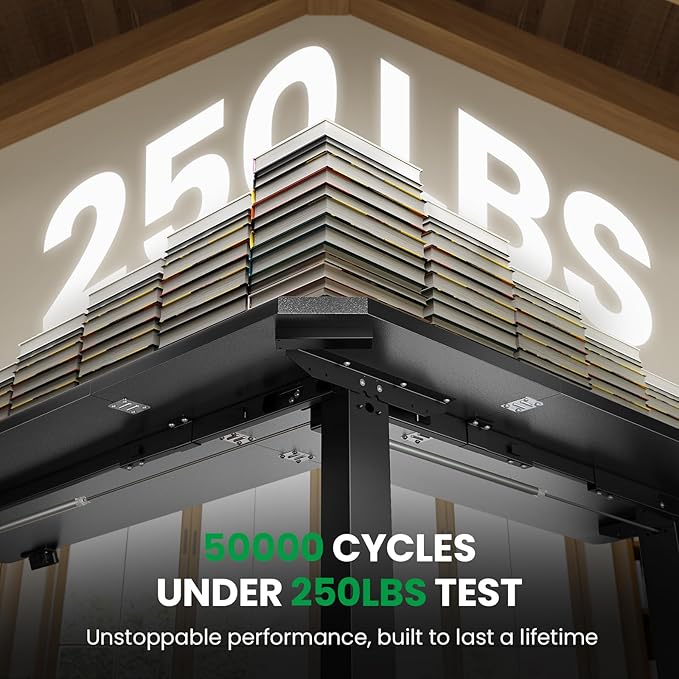 • 【Solid and Durable】The L-shaped electric standing desk features a durable and wear-resistant tabletop paired with three equal-length legs . During a 250LBs load-bearing test, the motor can smoothly perform 50,000 lifting and lowering cycles. SIAGO L-shaped standing desk — Redefining the lifecycle of office furniture through industrial-grade durability