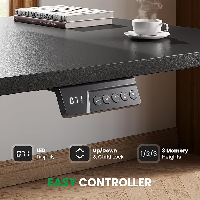 • 【Easy Controller & Height Adjustment】The L-shaped standing desk equipped with a smart memory controller, this desk allows you to preset 3 custom heights (27.5" - 45.7") for one-touch access to your ideal sitting/standing height with seamless transitions. The exclusive child safety lock prevents accidental operation. SIAGO standing desk is your ultimate solution for maintaining healthy work habits in the comfort of home.