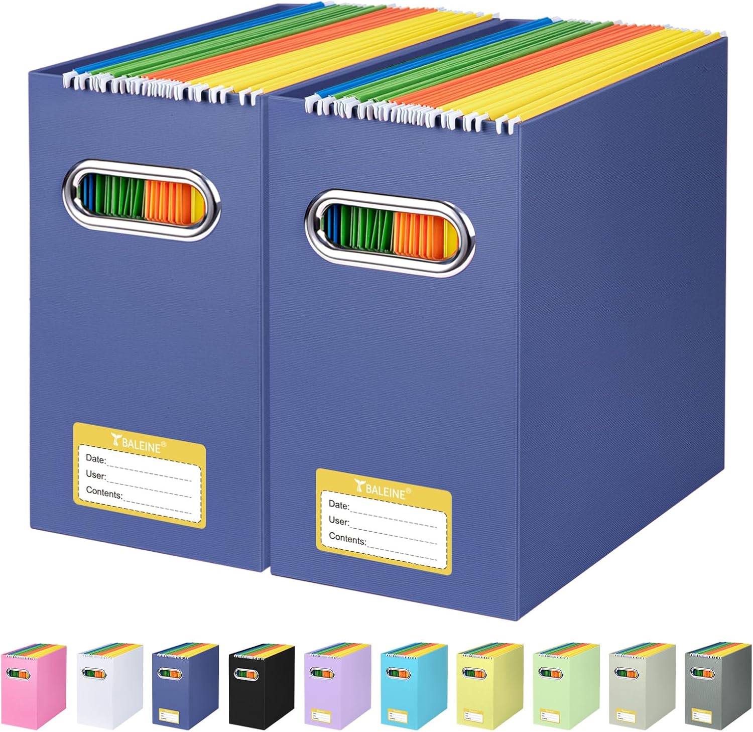 BALEINE File Organizer Box, Cardboard File Folder Organizer with Handle for Letter Size, Portable Collapsible Hanging Filing Box for Home Office Document Storage (2 Pack, Navy)