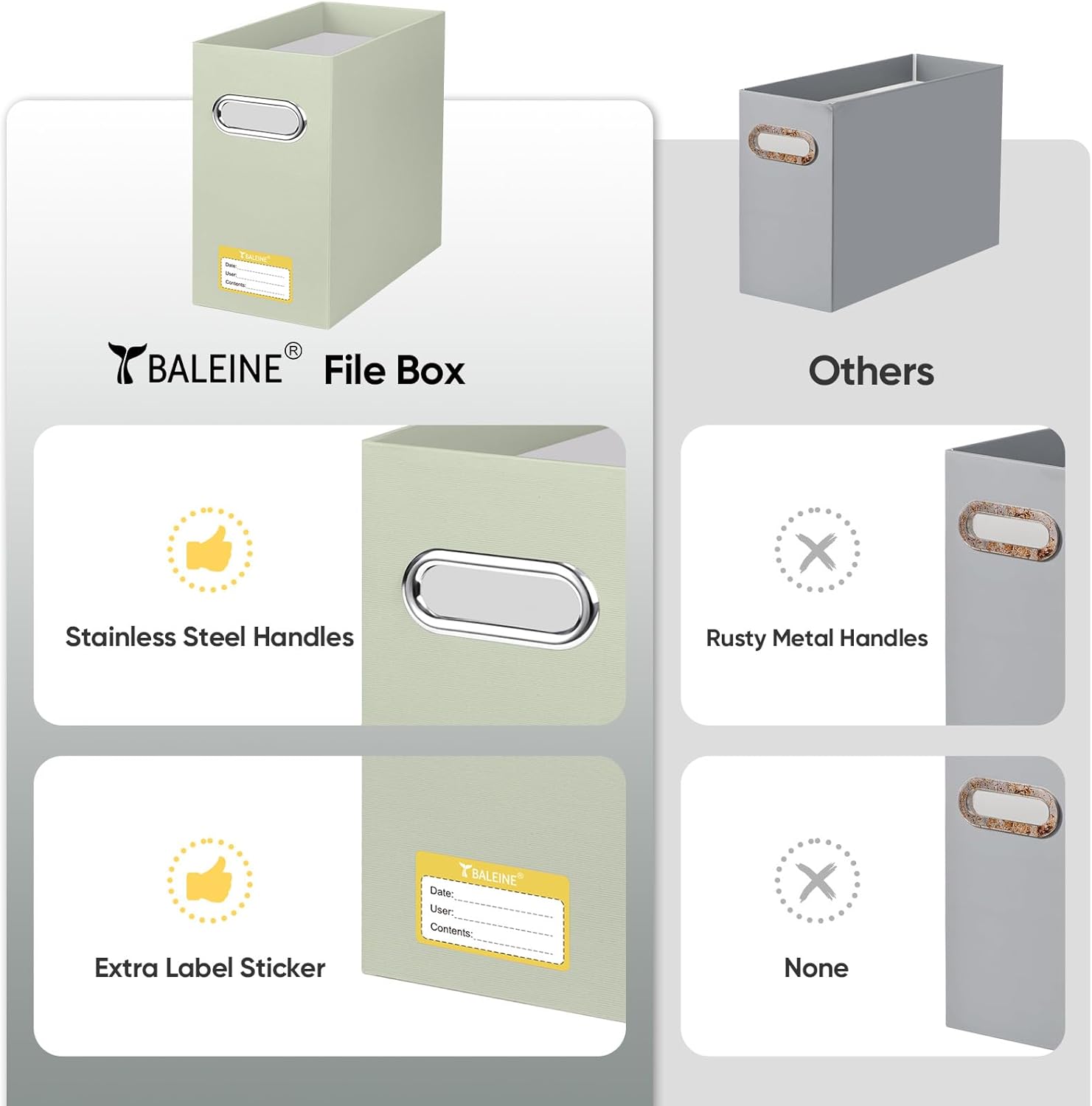 • UNIVERSAL SIZE: BALEINE File box with handles is suitable for letter size files; Designed for efficiency and functionality, it’s ideal for storing and organizing your paper documents, notebooks, and magazines (NOTE: Folders not included)