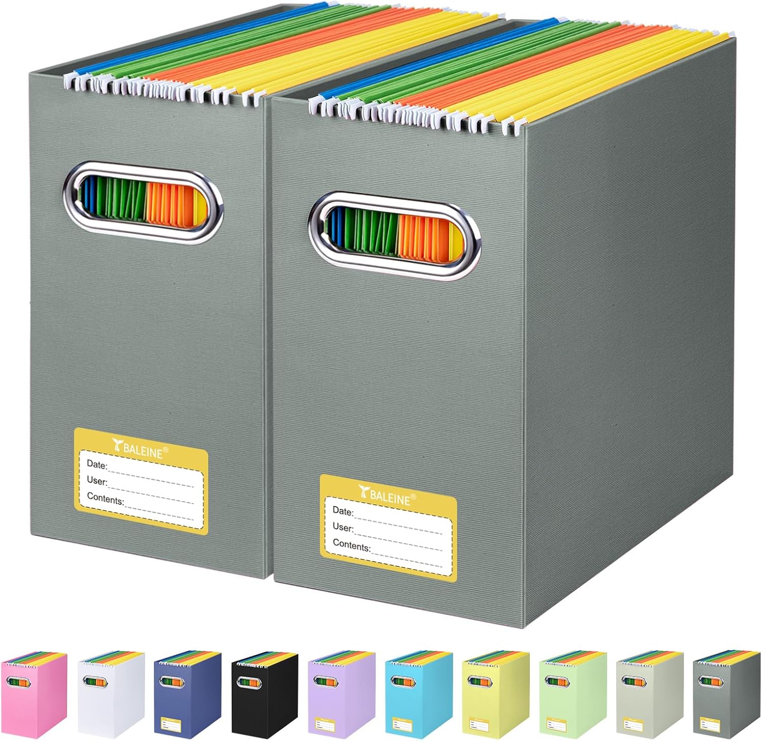 • UNIVERSAL SIZE: BALEINE File box with handles is suitable for letter size files; Designed for efficiency and functionality, it’s ideal for storing and organizing your paper documents, notebooks, and magazines (NOTE: Folders not included)