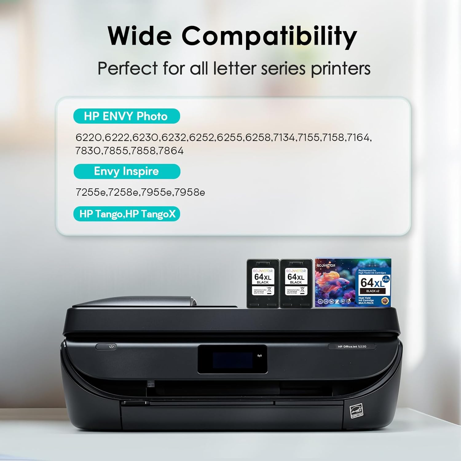 • Long-Lasting Page Yield: EcoVictor 64xl black ink cartridge for hp printers prints up to 550 pages each (at 5% coverage). EcoVictor for hp 64xl ink cartridge combo pack is perfect for home, school, or office use. Enjoy long-lasting printing performance without the hassle of frequent replacements.