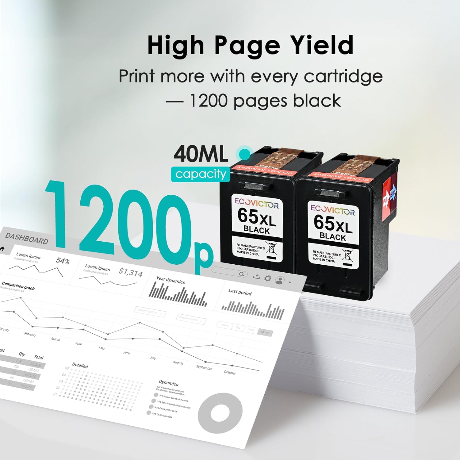 • Model Name : EcoVictor 65XL Black Ink Cartridge for HP Printers