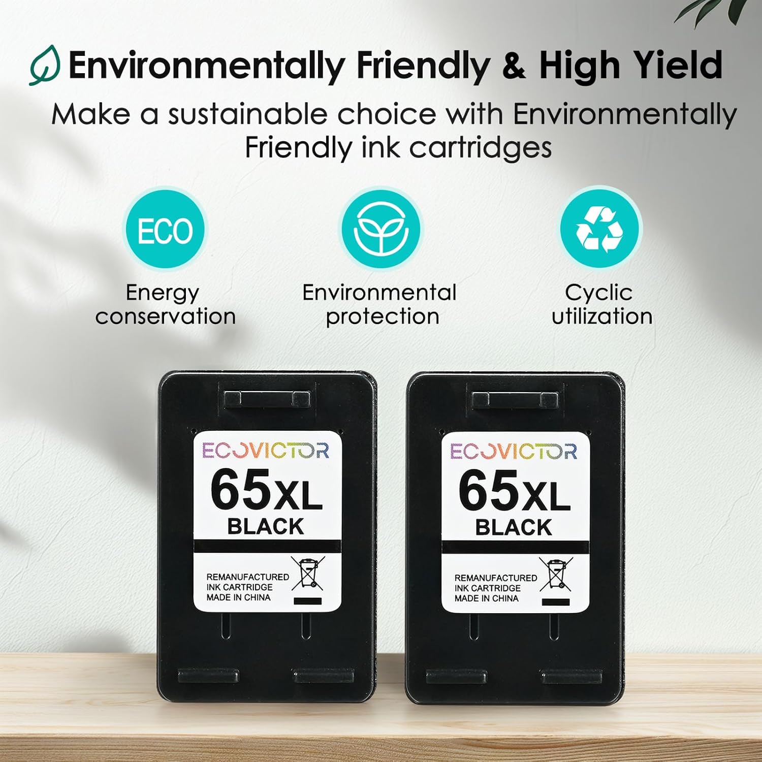 • Eco-Friendly & Certified: Made from durable, non-toxic materials, our remanufactured 65 xl hp ink cartridges black replacement for hp ink 65xl black is Climate Pledge Friendly certified, supporting sustainability while providing reliable performance. Print smarter and greener with EcoVictor 65 xl black ink cartridge for hp printers