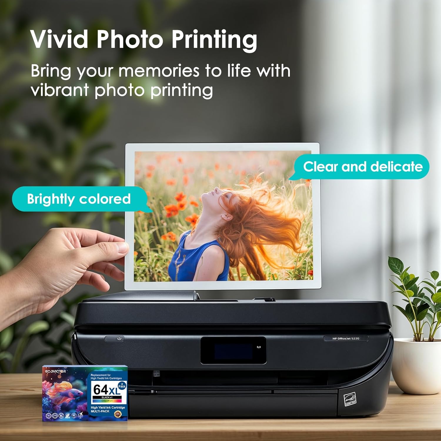 • Long-Lasting Page Yield: EcoVictor 64xl black and color ink cartridge for hp printers prints up to 550 pages each 64xl black ink cartridges and 450 pages each 64xl color ink cartridges(at 5% coverage). EcoVictor for hp 64xl ink cartridge combo pack is perfect for home, school, or office use. Enjoy long-lasting printing performance without the hassle of frequent replacements.
