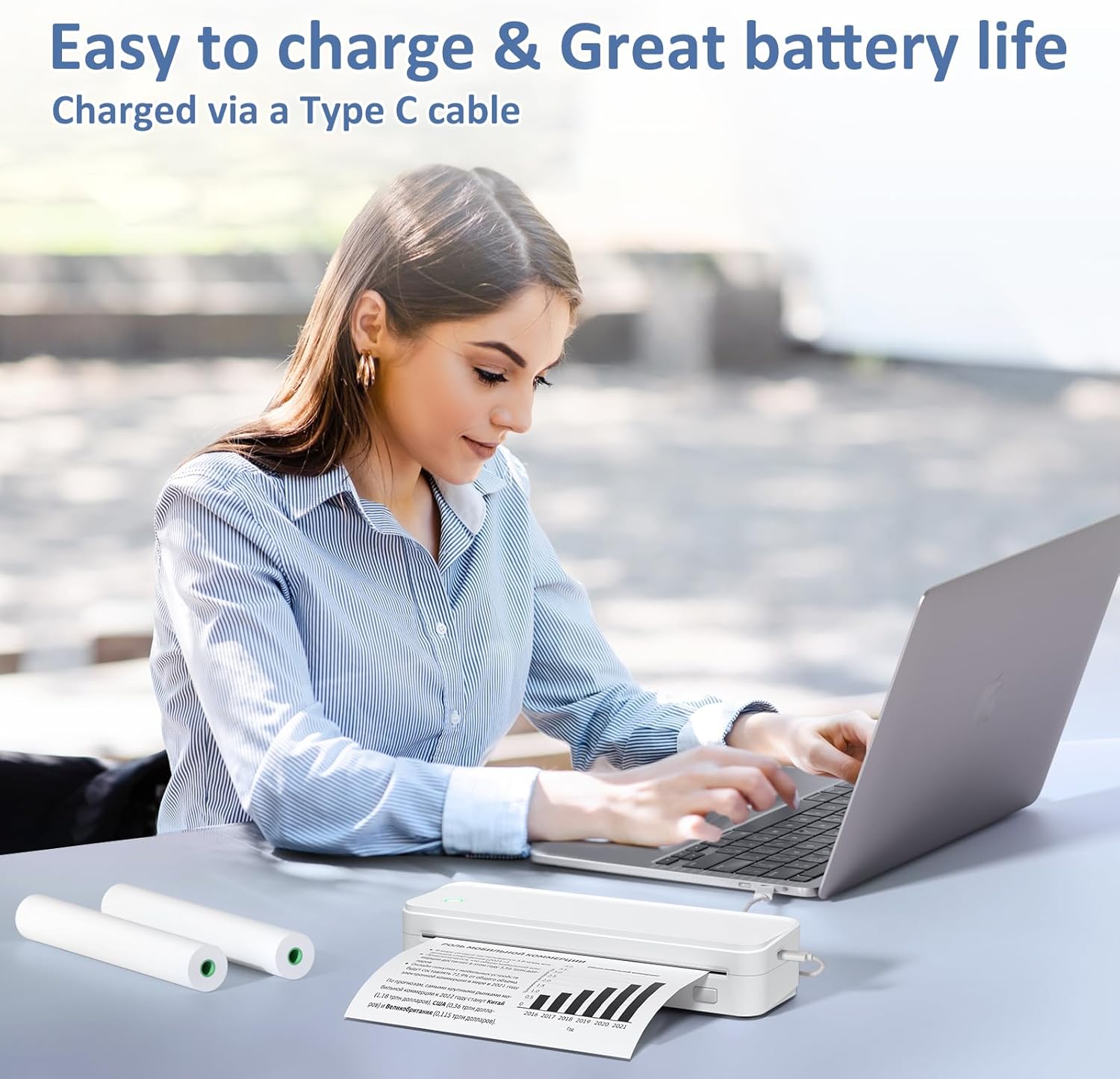 • Ultra-Portable Design - Weighing just 1.75lb and measuring 1.7in thick, the Gloryang portable printer is incredibly lightweight and compact. Perfect for on-the-go printing during travels, work, or university, it easily fits into backpacks or briefcases. Ideal for emergency scenarios, contracts, office documents, and more.