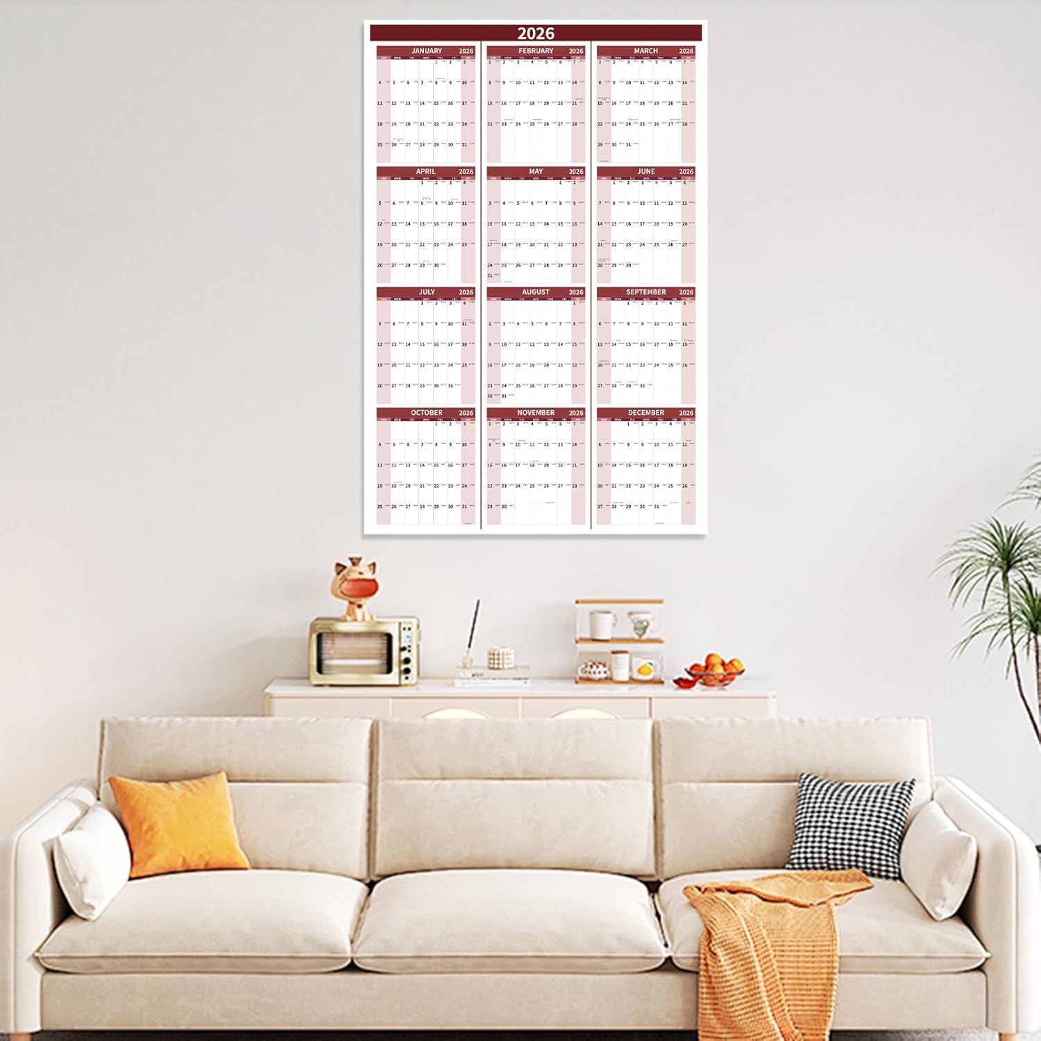 2026 Wall Calendar 34.8" x 22.8" Large Vertical Yearly Wall Hanging Calenda with Julian Date Thick Paper Calendar 12 Month Annual Wall Planner for Wall Office Fridge(Red)