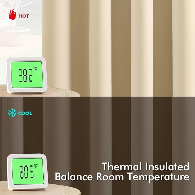 • Light Blocking: Our blackout curtains block 95% to 60% of light and UV, with darker colors up to 95% and medium shades at 80%. Even white color reduces light by 60%. Whether you need darkness for deep sleep in the bedroom or reduced glare for movie nights in the living room, these curtains deliver light blockage while enhancing your space's comfort and aesthetics
