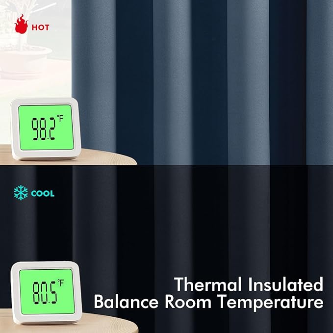• High-Quality Material: Crafted from high-quality 225GSM polyester fabric, these curtains offer enhanced durability and elegant drape. The soft blackout material features triple-layer weaving technology, with a middle layer of black yarn for superior light blocking and privacy. Both sides feature the same refined color, ensuring a seamless look that elevates your home’s aesthetic with understated sophistication