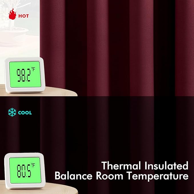 • High-Quality Material: Crafted from high-quality 225GSM polyester fabric, these curtains offer enhanced durability and elegant drape. The soft blackout material features triple-layer weaving technology, with a middle layer of black yarn for superior light blocking and privacy. Both sides feature the same refined color, ensuring a seamless look that elevates your home’s aesthetic with understated sophistication