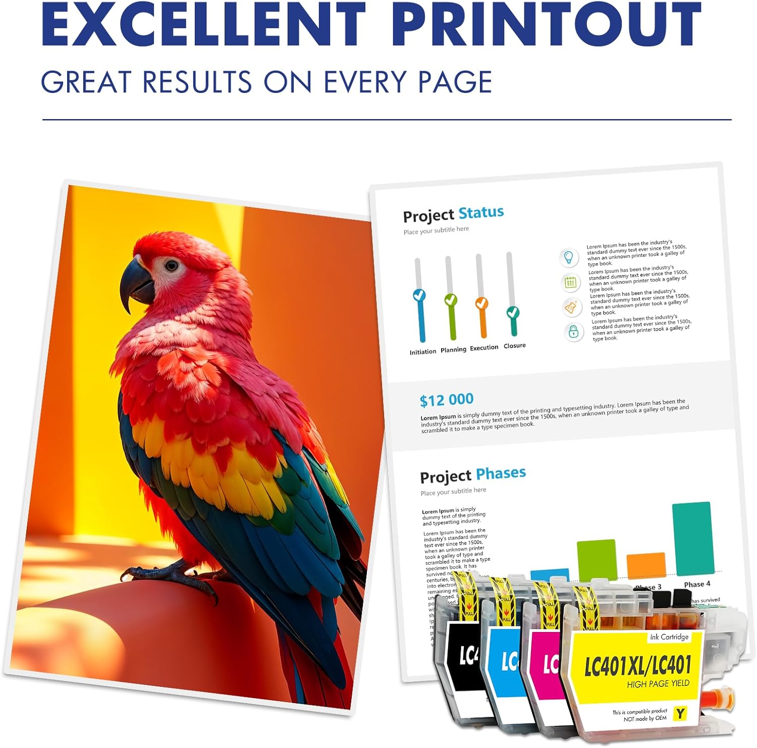 • Package Content: 1 x Black LC401XL BK, 1 x Cyan LC401XL C, 1 x Magenta LC401XL M, 1 x Yellow LC401XL Y, 1 x User Guide (NON-OEM Cartridges)
