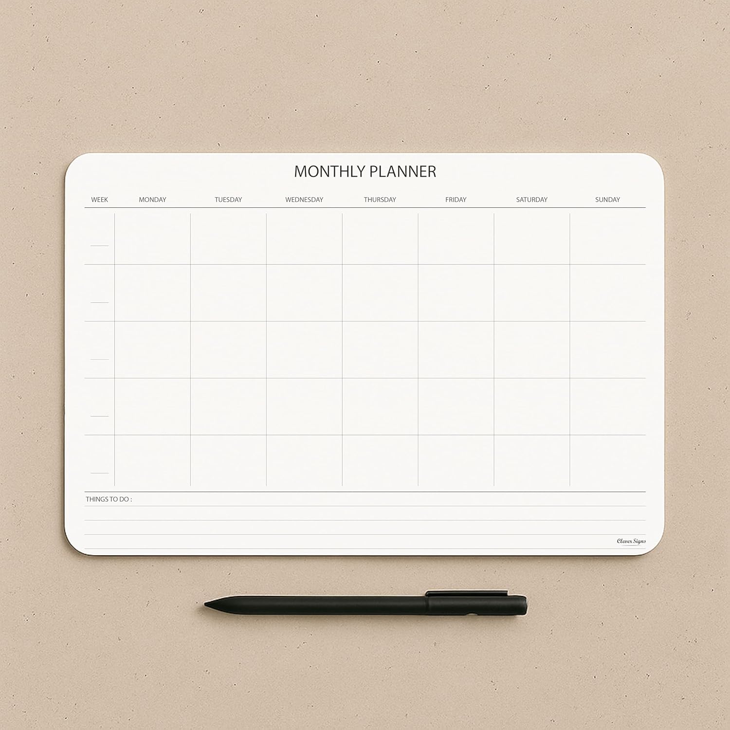 • CONVENIENT FORMAT: Sheets are designed to be clear and easy-to-use. The hard back cardboard support provides a sturdy surface for writing. CLEVER SIGNS Undated Monthly Planner Notepad measures 8,3 X 11,7 inches and is made with high-quality thick paper.