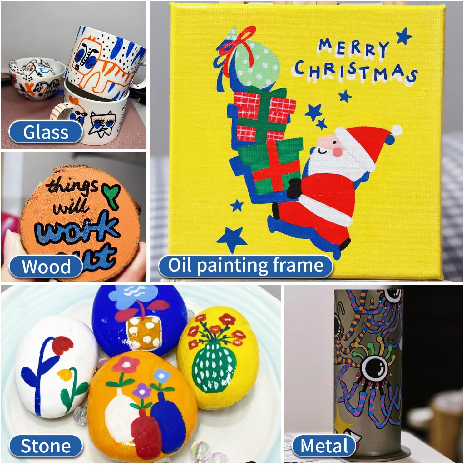 • Quick-Drying: Featuring quick-drying oil-based ink that resists water, fading and abrasion. The oil based paint pens is glossy. For Instant gratification: Get your projects completed in record time with our quick-drying markers, Drying time 45 - 60 seconds