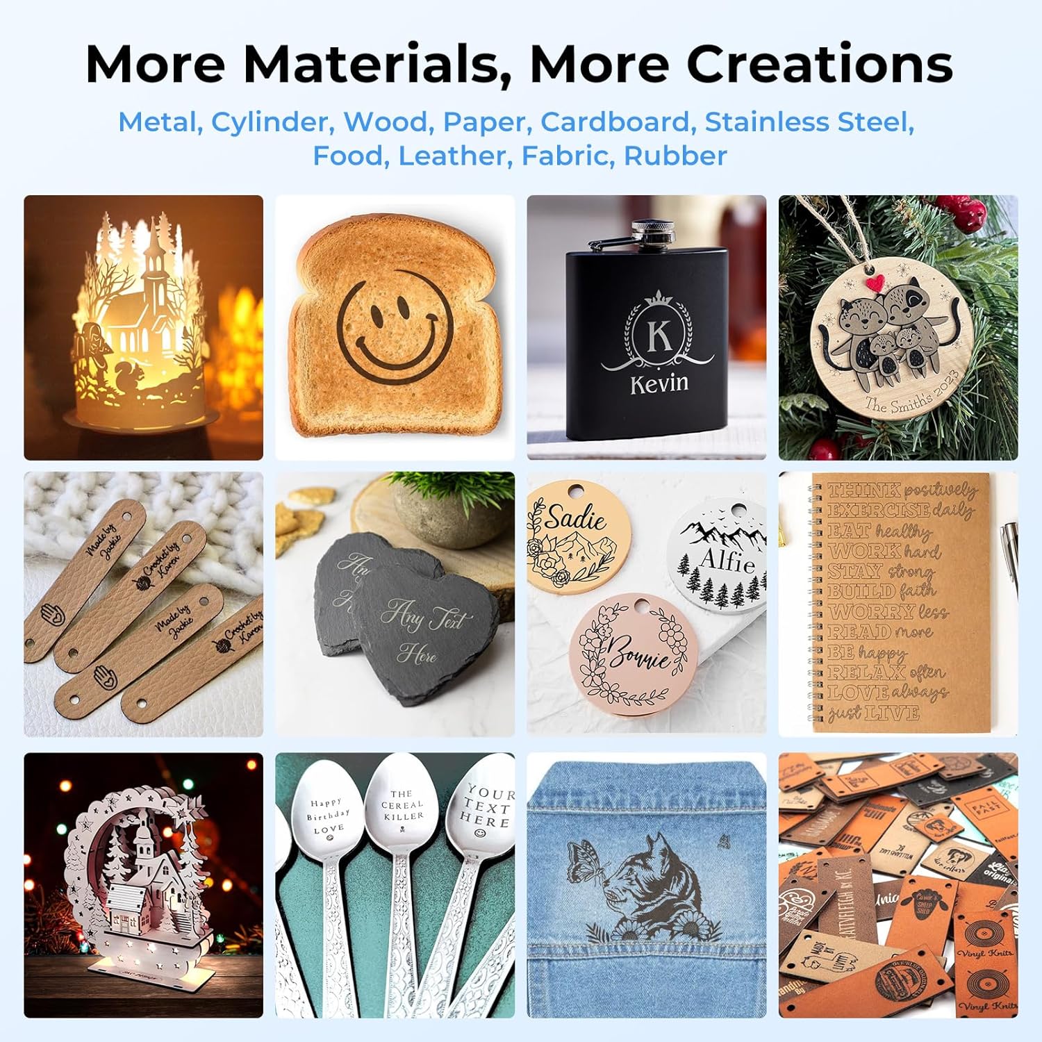• 【Works with 200+ Materials】Engrave on wood, leather, acrylic, and more—perfect for a wide range of creative projects. Laser class 4, power output level 7500 mW.