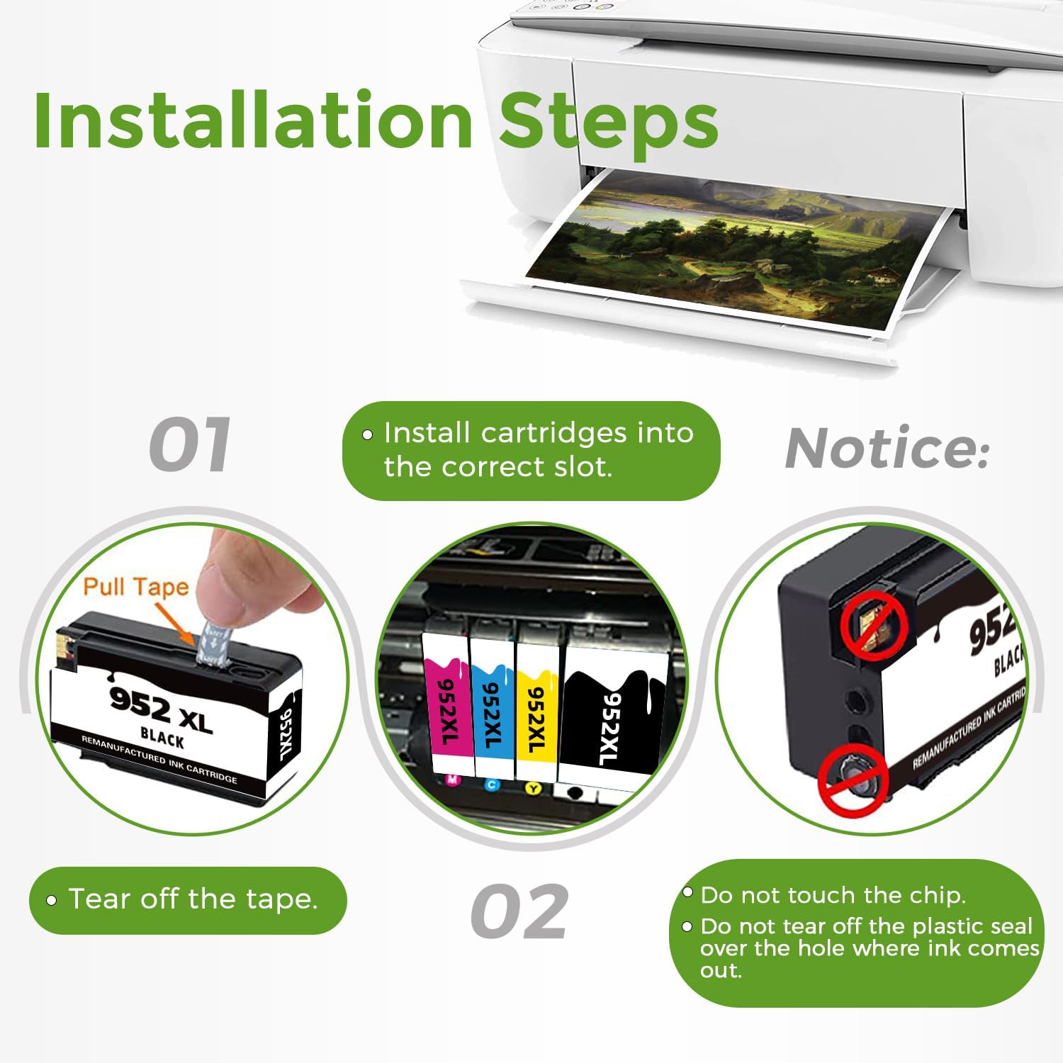 • Package Contents: New Extra Capacity Cartridge 952 combo pack of 4 ink cartridges:952XL Black ink cartridge, 952XL Cyan ink cartridge, 952XL Magenta ink cartridge, 952XL Yellow ink cartridge and a user guide.
