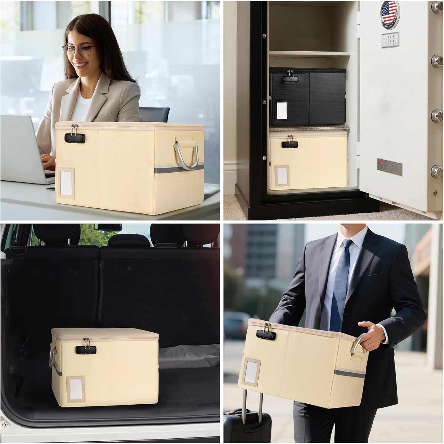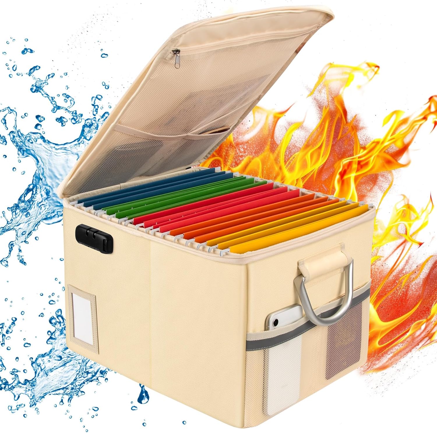 • Fireproof and water-resistant safe: The exterior material of Fireproof File Box is made of upgraded anti-static silicone coated fiberglass, which can withstand temperature up to 2000℉. Fireproof Document Box is not only fireproof but also highly water-resistant, so you don't have to worry about your important documents getting wet by rain.(Does not include folders)