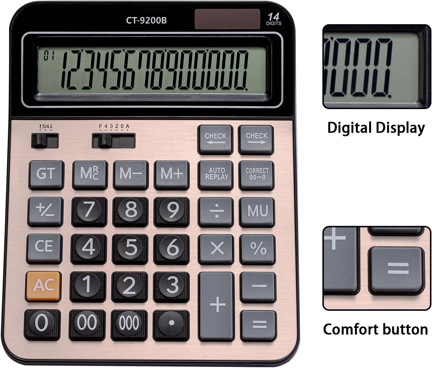 Large Computer Electronic Calculator Counter Solar & Battery Power 14 Digit Display Multi-Functional Big Button for Business Office School Calculating (HY-9200B)