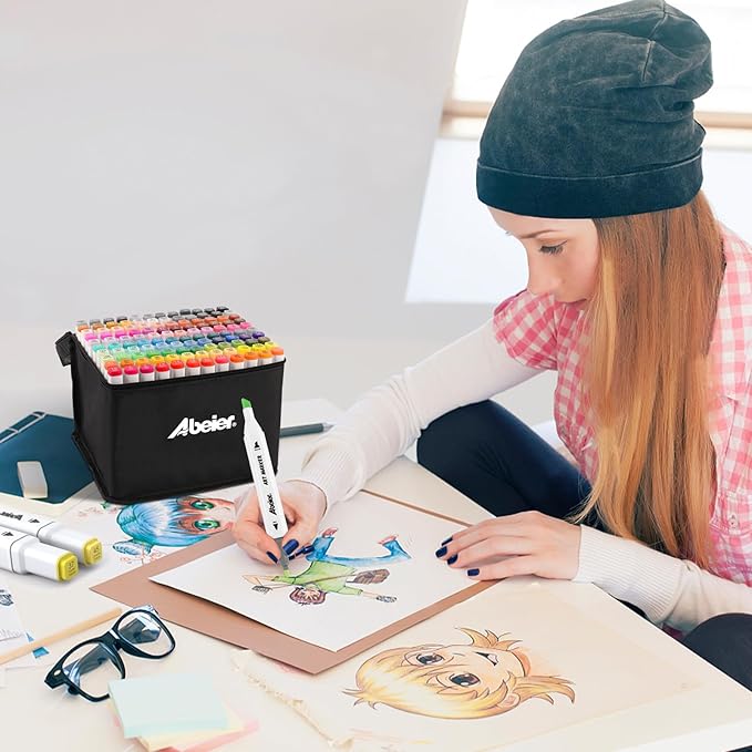 • Easy to Organize & Carry:The color-coded caps—matching each marker’s actual ink color—allow for instant identification of your perfect shade, cutting down search time while simplifying organization. Our marker set comes with a durable, lightweight carrying bag featuring a base tray at the bottom to hold all 60 markers organized. Easy to carry to art classes, travels, or weekend getaways.