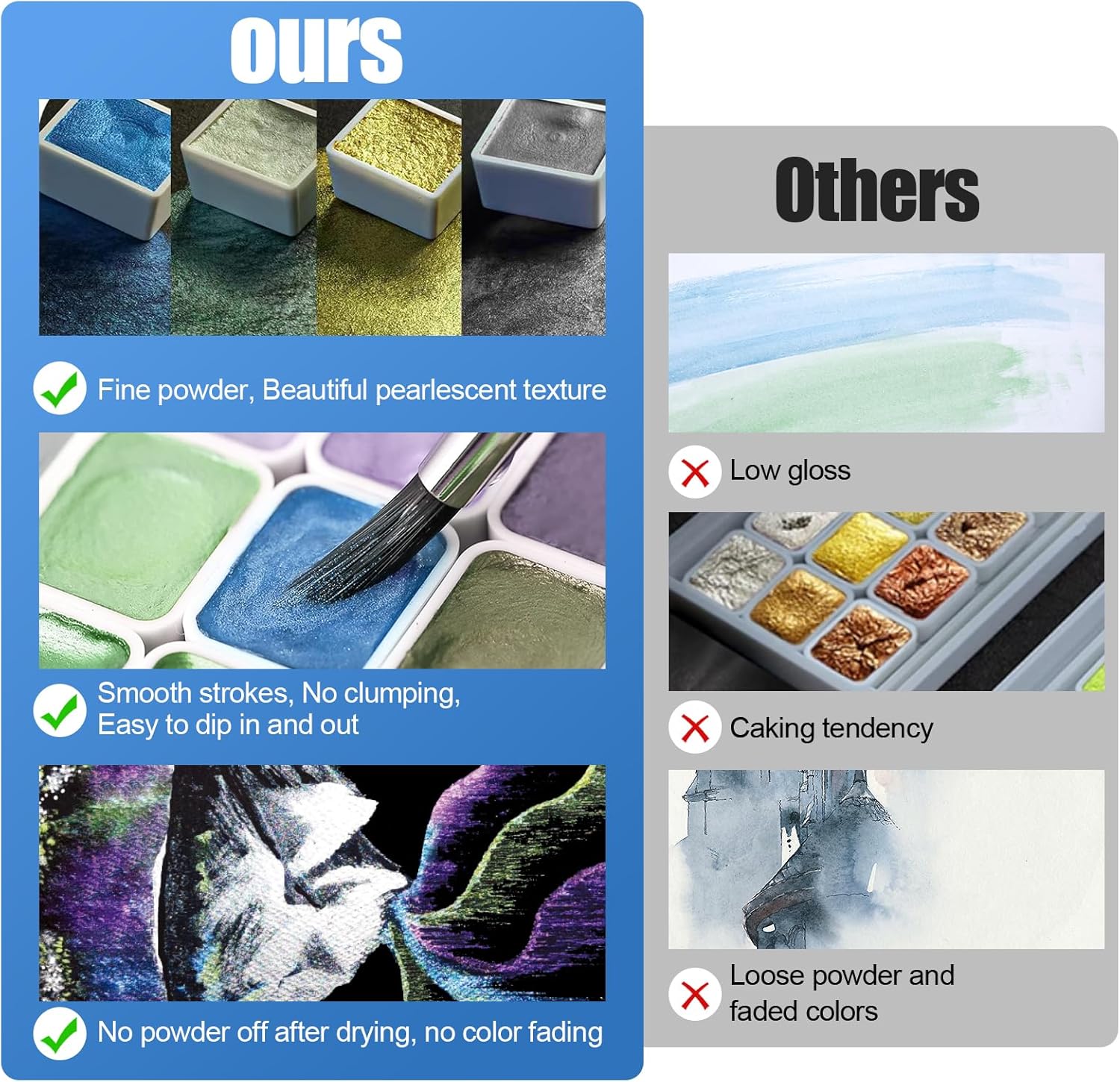 • 【Exceptional Shimmering Texture】: CraftyManor Pearlized Watercolors are formulated with premium, modified mica powder, resulting in a stunningly glossy finish. Free of acids and toxins, they are safe to use and will add a radiant touch to your artwork