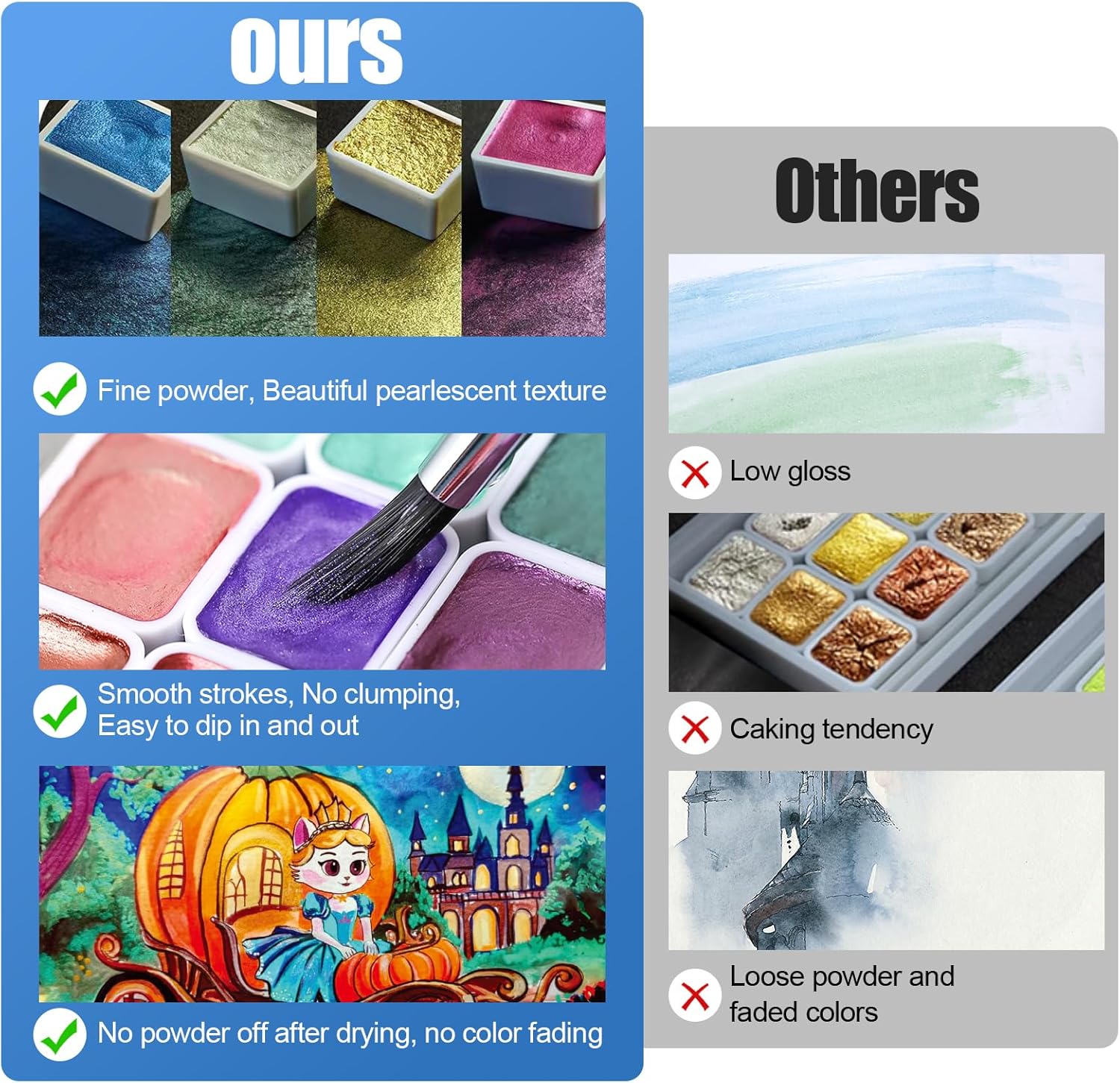 • 【Exceptional Shimmering Texture】: CraftyManor Pearlized Watercolors are formulated with premium, modified mica powder, resulting in a stunningly glossy finish. Free of acids and toxins, they are safe to use and will add a radiant touch to your artwork