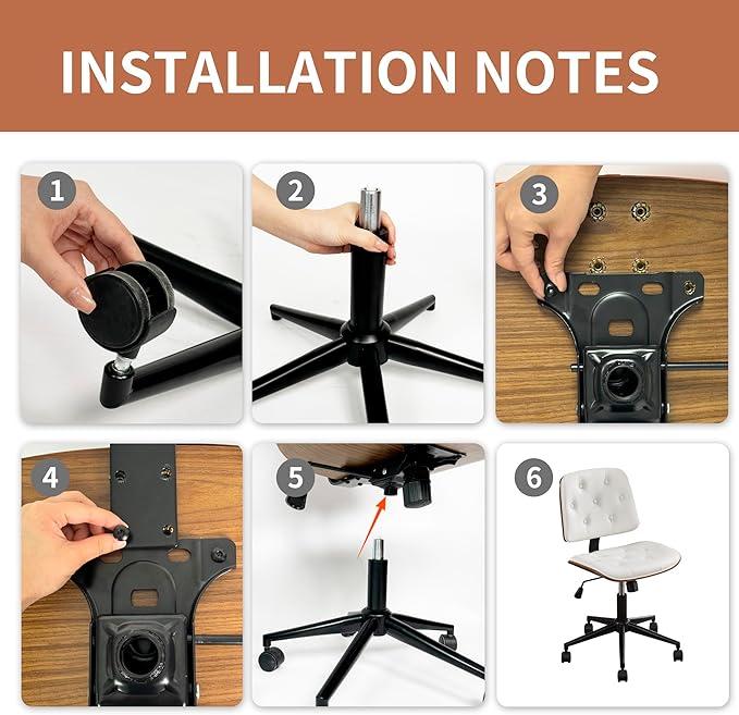 • RELIABLE STABILITY: Our computer chair comes with a durable black metal base and 5 silent casters, and the frame is made of sturdy solid wood and one-piece steel plate.5 universal casters allow movement in any direction. With a great combination of comfort and functionality, this chair is ideal for the home office. Overall dimensions are 21.9“ W x 15.2” D x 32.5“-35.8” H.